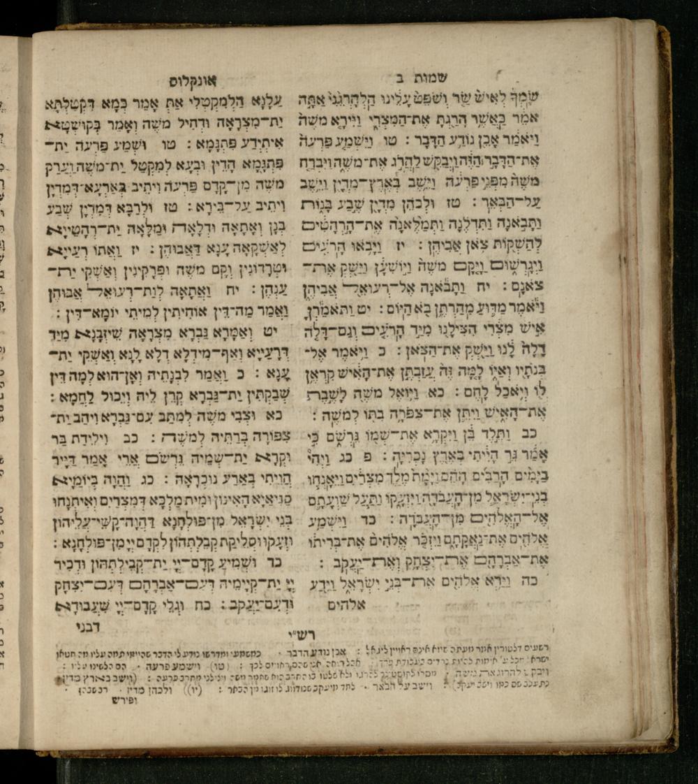 Sefer Shemot : ʿim 3 targumim ... pe. Rashi, u-ferush Rashbam u-ferush Mikhlal yofi min R. Shelomoh ben Melekh u-ferush Beʾer reḥovot ʿal diḳduḳe Rashi ... ṿe-Sefer ha-Ḥinukh me-Rabenu Aharon ha-Leṿi ... / huva le-vet ha-defus ʿa.y. ha-torani ha-mufla mo.h.r.R. Pinḥas Eliyahu ben ha-torani ha-manhig mo.h.r.R. Ḥayim Kats u-veno ha-torani ha-mufla mo.h.r.R. Shemuʾel Kats mi-ḳ.ḳ. Ṿilnaספר שמות : עם ג׳ תרגומים ... פירש״י, ופירוש רש״בם ופירוש מכלל יופי מן ר׳ שלמה בן מלך ופירוש באר רחובות על דקדוקי רש״י ... וספר החינוך מרבינו אהרן הלוי ... / הובא לבית הדפוס ע״י התורני המופלא מוה״רר פנחס אליהו בן התורני המנהיג מוה״רר חיים כ״ץ ובנו התורני המופלא מוה״רר שמואל כ״ץ מק״ק ווילנא