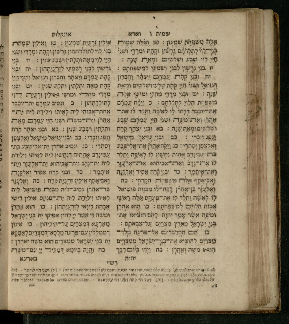 Sefer Shemot : ʿim 3 targumim ... pe. Rashi, u-ferush Rashbam u-ferush Mikhlal yofi min R. Shelomoh ben Melekh u-ferush Beʾer reḥovot ʿal diḳduḳe Rashi ... ṿe-Sefer ha-Ḥinukh me-Rabenu Aharon ha-Leṿi ... / huva le-vet ha-defus ʿa.y. ha-torani ha-mufla mo.h.r.R. Pinḥas Eliyahu ben ha-torani ha-manhig mo.h.r.R. Ḥayim Kats u-veno ha-torani ha-mufla mo.h.r.R. Shemuʾel Kats mi-ḳ.ḳ. Ṿilnaספר שמות : עם ג׳ תרגומים ... פירש״י, ופירוש רש״בם ופירוש מכלל יופי מן ר׳ שלמה בן מלך ופירוש באר רחובות על דקדוקי רש״י ... וספר החינוך מרבינו אהרן הלוי ... / הובא לבית הדפוס ע״י התורני המופלא מוה״רר פנחס אליהו בן התורני המנהיג מוה״רר חיים כ״ץ ובנו התורני המופלא מוה״רר שמואל כ״ץ מק״ק ווילנא