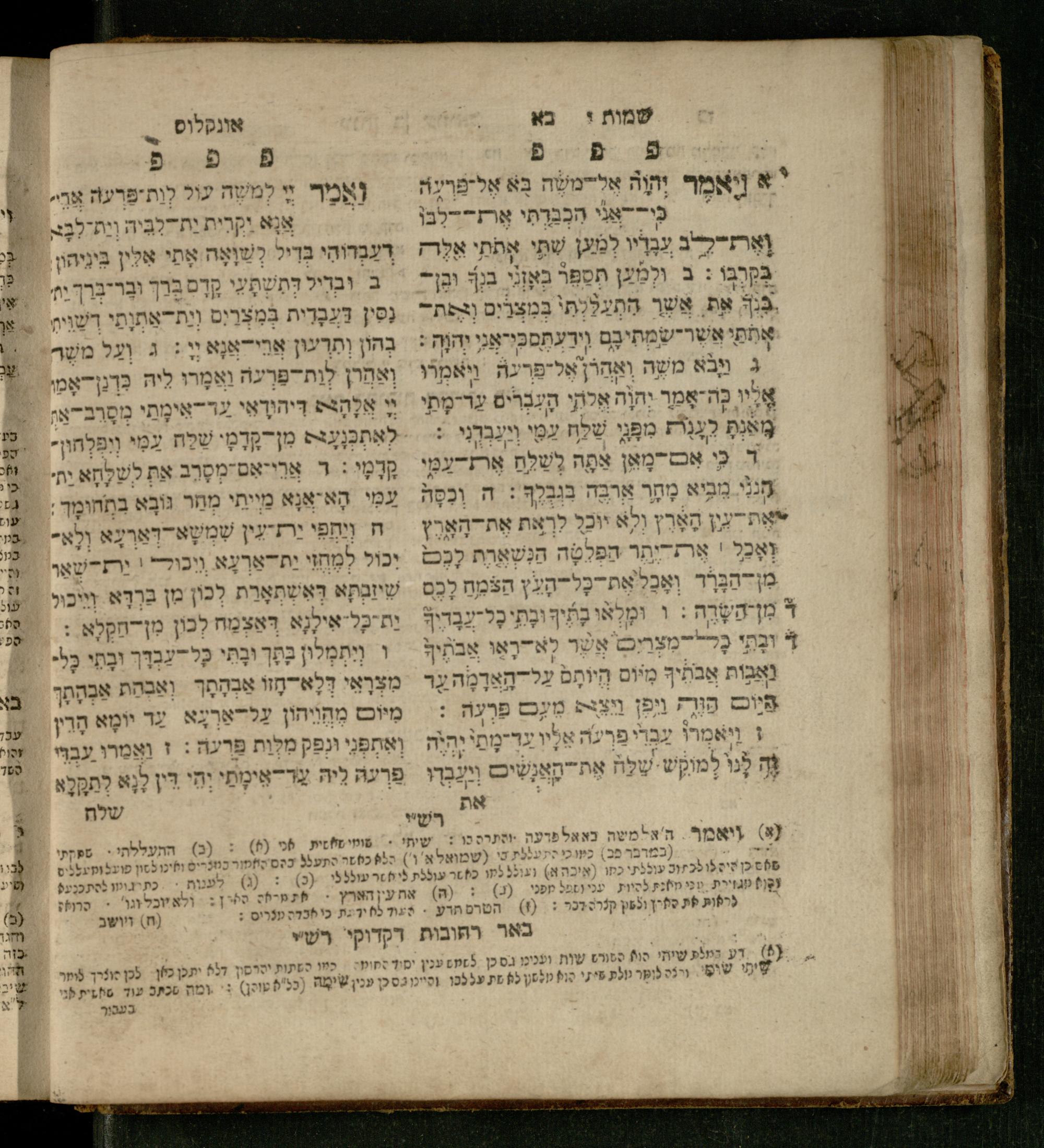 Sefer Shemot : ʿim 3 targumim ... pe. Rashi, u-ferush Rashbam u-ferush Mikhlal yofi min R. Shelomoh ben Melekh u-ferush Beʾer reḥovot ʿal diḳduḳe Rashi ... ṿe-Sefer ha-Ḥinukh me-Rabenu Aharon ha-Leṿi ... / huva le-vet ha-defus ʿa.y. ha-torani ha-mufla mo.h.r.R. Pinḥas Eliyahu ben ha-torani ha-manhig mo.h.r.R. Ḥayim Kats u-veno ha-torani ha-mufla mo.h.r.R. Shemuʾel Kats mi-ḳ.ḳ. Ṿilnaספר שמות : עם ג׳ תרגומים ... פירש״י, ופירוש רש״בם ופירוש מכלל יופי מן ר׳ שלמה בן מלך ופירוש באר רחובות על דקדוקי רש״י ... וספר החינוך מרבינו אהרן הלוי ... / הובא לבית הדפוס ע״י התורני המופלא מוה״רר פנחס אליהו בן התורני המנהיג מוה״רר חיים כ״ץ ובנו התורני המופלא מוה״רר שמואל כ״ץ מק״ק ווילנא