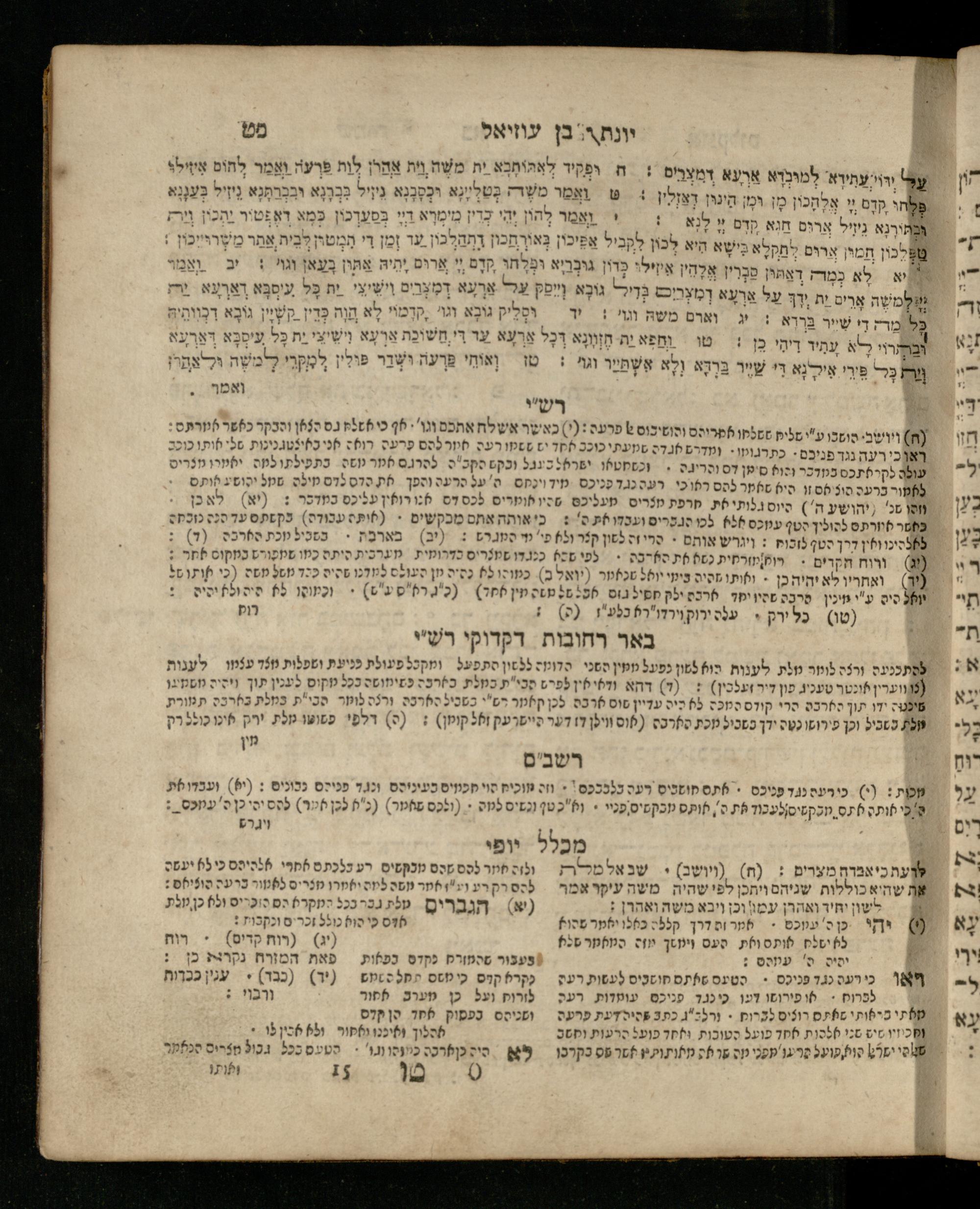 Sefer Shemot : ʿim 3 targumim ... pe. Rashi, u-ferush Rashbam u-ferush Mikhlal yofi min R. Shelomoh ben Melekh u-ferush Beʾer reḥovot ʿal diḳduḳe Rashi ... ṿe-Sefer ha-Ḥinukh me-Rabenu Aharon ha-Leṿi ... / huva le-vet ha-defus ʿa.y. ha-torani ha-mufla mo.h.r.R. Pinḥas Eliyahu ben ha-torani ha-manhig mo.h.r.R. Ḥayim Kats u-veno ha-torani ha-mufla mo.h.r.R. Shemuʾel Kats mi-ḳ.ḳ. Ṿilnaספר שמות : עם ג׳ תרגומים ... פירש״י, ופירוש רש״בם ופירוש מכלל יופי מן ר׳ שלמה בן מלך ופירוש באר רחובות על דקדוקי רש״י ... וספר החינוך מרבינו אהרן הלוי ... / הובא לבית הדפוס ע״י התורני המופלא מוה״רר פנחס אליהו בן התורני המנהיג מוה״רר חיים כ״ץ ובנו התורני המופלא מוה״רר שמואל כ״ץ מק״ק ווילנא