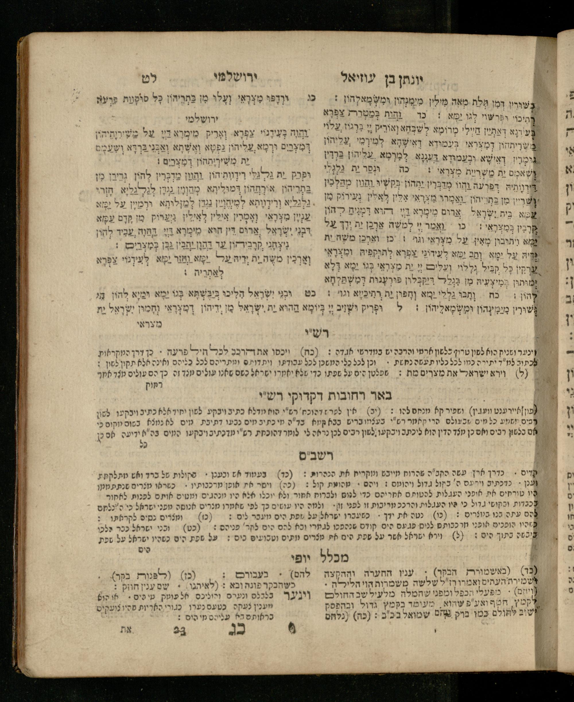 Sefer Shemot : ʿim 3 targumim ... pe. Rashi, u-ferush Rashbam u-ferush Mikhlal yofi min R. Shelomoh ben Melekh u-ferush Beʾer reḥovot ʿal diḳduḳe Rashi ... ṿe-Sefer ha-Ḥinukh me-Rabenu Aharon ha-Leṿi ... / huva le-vet ha-defus ʿa.y. ha-torani ha-mufla mo.h.r.R. Pinḥas Eliyahu ben ha-torani ha-manhig mo.h.r.R. Ḥayim Kats u-veno ha-torani ha-mufla mo.h.r.R. Shemuʾel Kats mi-ḳ.ḳ. Ṿilnaספר שמות : עם ג׳ תרגומים ... פירש״י, ופירוש רש״בם ופירוש מכלל יופי מן ר׳ שלמה בן מלך ופירוש באר רחובות על דקדוקי רש״י ... וספר החינוך מרבינו אהרן הלוי ... / הובא לבית הדפוס ע״י התורני המופלא מוה״רר פנחס אליהו בן התורני המנהיג מוה״רר חיים כ״ץ ובנו התורני המופלא מוה״רר שמואל כ״ץ מק״ק ווילנא