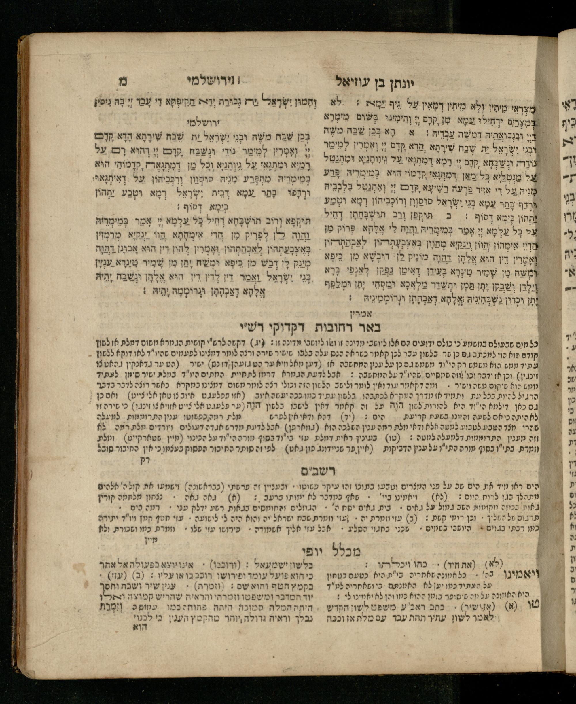 Sefer Shemot : ʿim 3 targumim ... pe. Rashi, u-ferush Rashbam u-ferush Mikhlal yofi min R. Shelomoh ben Melekh u-ferush Beʾer reḥovot ʿal diḳduḳe Rashi ... ṿe-Sefer ha-Ḥinukh me-Rabenu Aharon ha-Leṿi ... / huva le-vet ha-defus ʿa.y. ha-torani ha-mufla mo.h.r.R. Pinḥas Eliyahu ben ha-torani ha-manhig mo.h.r.R. Ḥayim Kats u-veno ha-torani ha-mufla mo.h.r.R. Shemuʾel Kats mi-ḳ.ḳ. Ṿilnaספר שמות : עם ג׳ תרגומים ... פירש״י, ופירוש רש״בם ופירוש מכלל יופי מן ר׳ שלמה בן מלך ופירוש באר רחובות על דקדוקי רש״י ... וספר החינוך מרבינו אהרן הלוי ... / הובא לבית הדפוס ע״י התורני המופלא מוה״רר פנחס אליהו בן התורני המנהיג מוה״רר חיים כ״ץ ובנו התורני המופלא מוה״רר שמואל כ״ץ מק״ק ווילנא