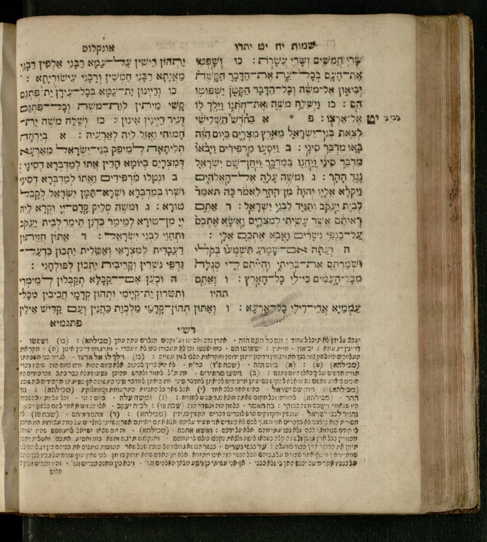 Sefer Shemot : ʿim 3 targumim ... pe. Rashi, u-ferush Rashbam u-ferush Mikhlal yofi min R. Shelomoh ben Melekh u-ferush Beʾer reḥovot ʿal diḳduḳe Rashi ... ṿe-Sefer ha-Ḥinukh me-Rabenu Aharon ha-Leṿi ... / huva le-vet ha-defus ʿa.y. ha-torani ha-mufla mo.h.r.R. Pinḥas Eliyahu ben ha-torani ha-manhig mo.h.r.R. Ḥayim Kats u-veno ha-torani ha-mufla mo.h.r.R. Shemuʾel Kats mi-ḳ.ḳ. Ṿilnaספר שמות : עם ג׳ תרגומים ... פירש״י, ופירוש רש״בם ופירוש מכלל יופי מן ר׳ שלמה בן מלך ופירוש באר רחובות על דקדוקי רש״י ... וספר החינוך מרבינו אהרן הלוי ... / הובא לבית הדפוס ע״י התורני המופלא מוה״רר פנחס אליהו בן התורני המנהיג מוה״רר חיים כ״ץ ובנו התורני המופלא מוה״רר שמואל כ״ץ מק״ק ווילנא