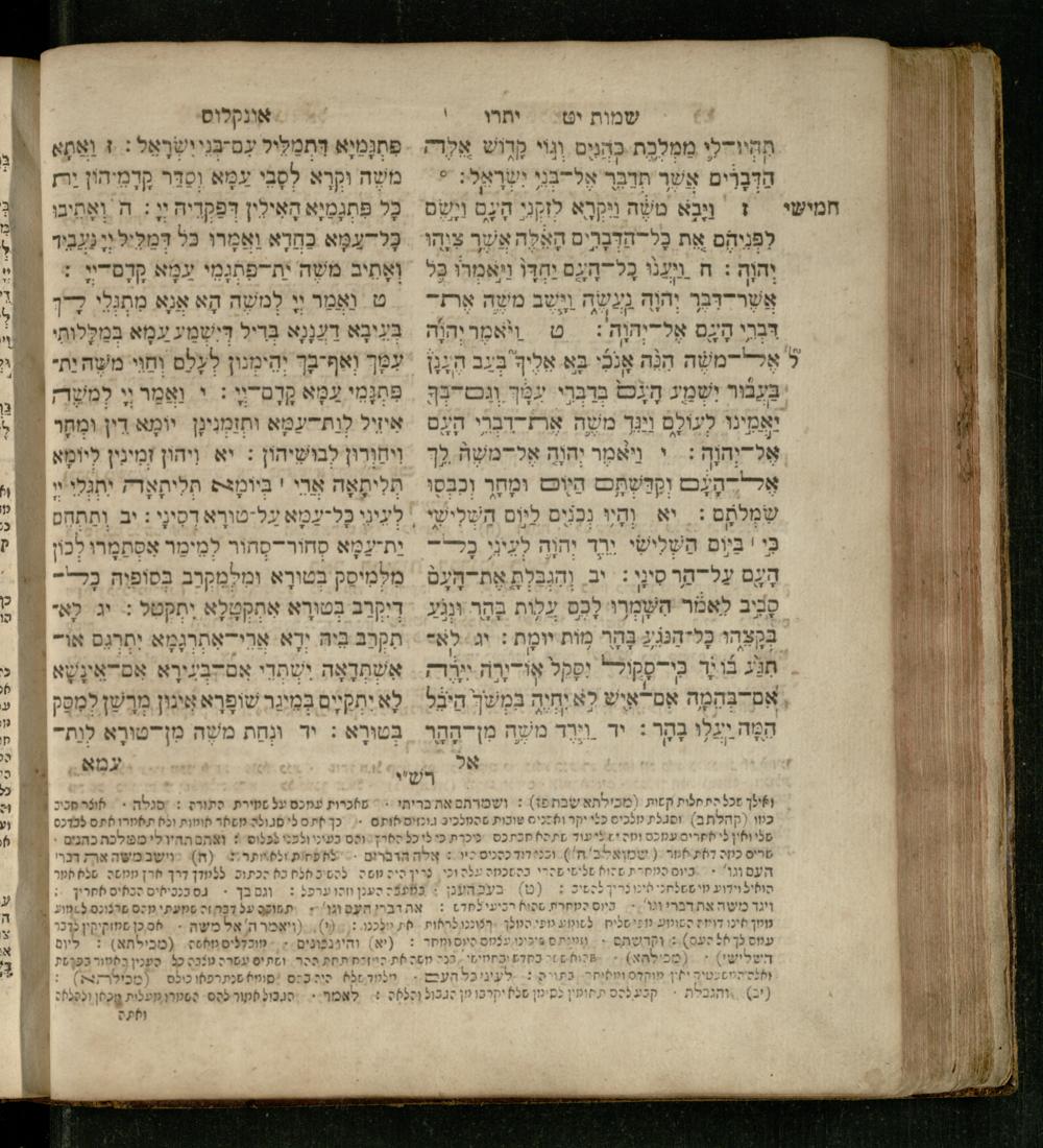 Sefer Shemot : ʿim 3 targumim ... pe. Rashi, u-ferush Rashbam u-ferush Mikhlal yofi min R. Shelomoh ben Melekh u-ferush Beʾer reḥovot ʿal diḳduḳe Rashi ... ṿe-Sefer ha-Ḥinukh me-Rabenu Aharon ha-Leṿi ... / huva le-vet ha-defus ʿa.y. ha-torani ha-mufla mo.h.r.R. Pinḥas Eliyahu ben ha-torani ha-manhig mo.h.r.R. Ḥayim Kats u-veno ha-torani ha-mufla mo.h.r.R. Shemuʾel Kats mi-ḳ.ḳ. Ṿilnaספר שמות : עם ג׳ תרגומים ... פירש״י, ופירוש רש״בם ופירוש מכלל יופי מן ר׳ שלמה בן מלך ופירוש באר רחובות על דקדוקי רש״י ... וספר החינוך מרבינו אהרן הלוי ... / הובא לבית הדפוס ע״י התורני המופלא מוה״רר פנחס אליהו בן התורני המנהיג מוה״רר חיים כ״ץ ובנו התורני המופלא מוה״רר שמואל כ״ץ מק״ק ווילנא