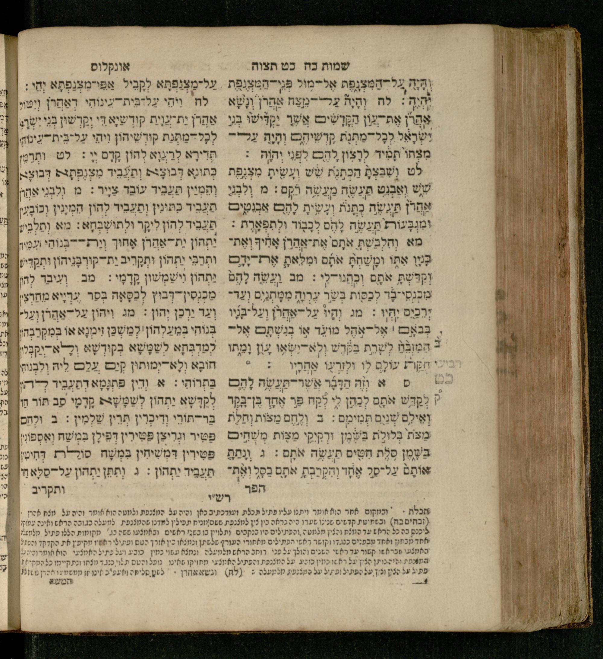 Sefer Shemot : ʿim 3 targumim ... pe. Rashi, u-ferush Rashbam u-ferush Mikhlal yofi min R. Shelomoh ben Melekh u-ferush Beʾer reḥovot ʿal diḳduḳe Rashi ... ṿe-Sefer ha-Ḥinukh me-Rabenu Aharon ha-Leṿi ... / huva le-vet ha-defus ʿa.y. ha-torani ha-mufla mo.h.r.R. Pinḥas Eliyahu ben ha-torani ha-manhig mo.h.r.R. Ḥayim Kats u-veno ha-torani ha-mufla mo.h.r.R. Shemuʾel Kats mi-ḳ.ḳ. Ṿilnaספר שמות : עם ג׳ תרגומים ... פירש״י, ופירוש רש״בם ופירוש מכלל יופי מן ר׳ שלמה בן מלך ופירוש באר רחובות על דקדוקי רש״י ... וספר החינוך מרבינו אהרן הלוי ... / הובא לבית הדפוס ע״י התורני המופלא מוה״רר פנחס אליהו בן התורני המנהיג מוה״רר חיים כ״ץ ובנו התורני המופלא מוה״רר שמואל כ״ץ מק״ק ווילנא