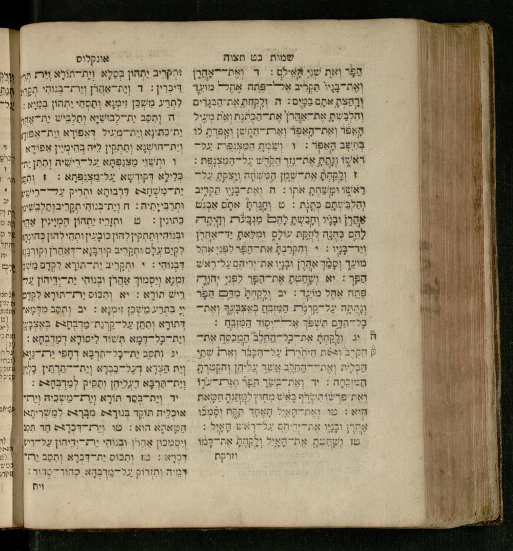 Sefer Shemot : ʿim 3 targumim ... pe. Rashi, u-ferush Rashbam u-ferush Mikhlal yofi min R. Shelomoh ben Melekh u-ferush Beʾer reḥovot ʿal diḳduḳe Rashi ... ṿe-Sefer ha-Ḥinukh me-Rabenu Aharon ha-Leṿi ... / huva le-vet ha-defus ʿa.y. ha-torani ha-mufla mo.h.r.R. Pinḥas Eliyahu ben ha-torani ha-manhig mo.h.r.R. Ḥayim Kats u-veno ha-torani ha-mufla mo.h.r.R. Shemuʾel Kats mi-ḳ.ḳ. Ṿilnaספר שמות : עם ג׳ תרגומים ... פירש״י, ופירוש רש״בם ופירוש מכלל יופי מן ר׳ שלמה בן מלך ופירוש באר רחובות על דקדוקי רש״י ... וספר החינוך מרבינו אהרן הלוי ... / הובא לבית הדפוס ע״י התורני המופלא מוה״רר פנחס אליהו בן התורני המנהיג מוה״רר חיים כ״ץ ובנו התורני המופלא מוה״רר שמואל כ״ץ מק״ק ווילנא