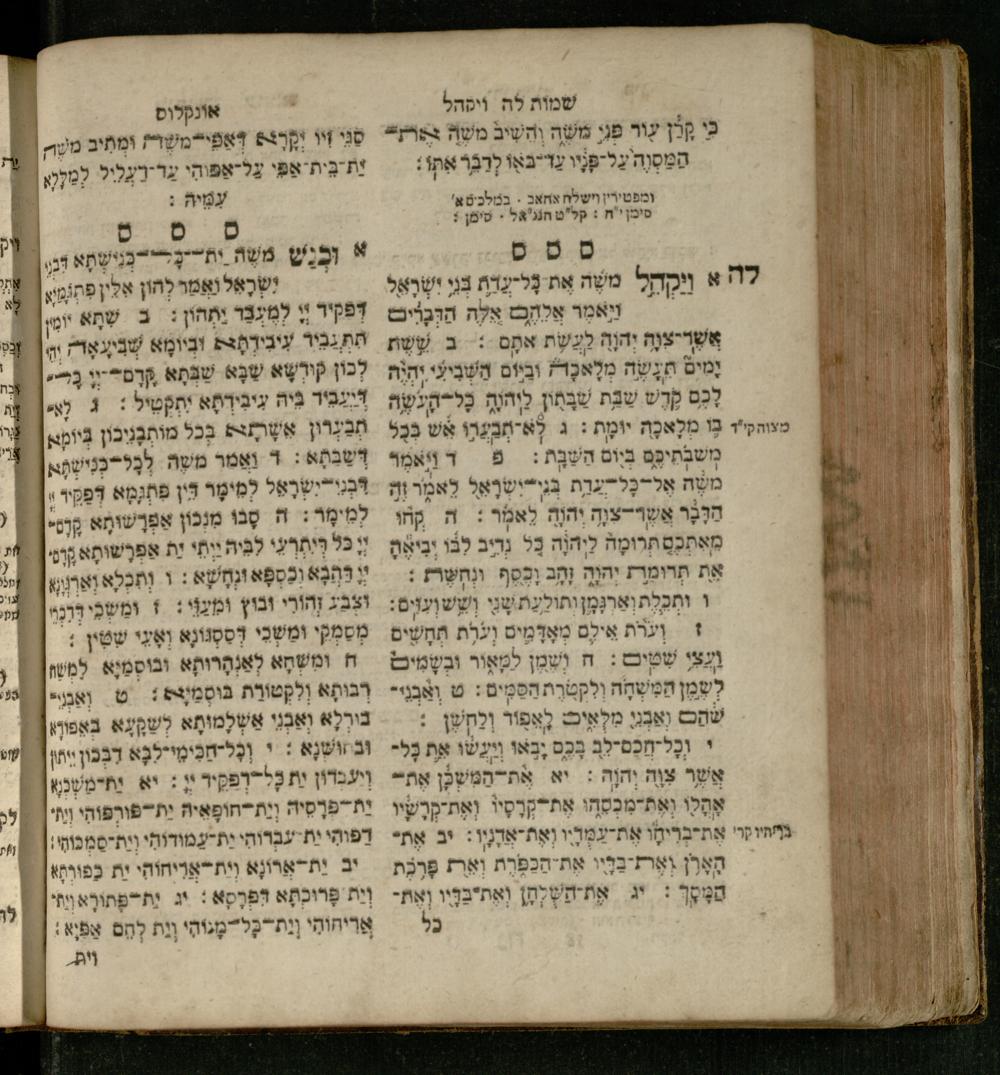 Sefer Shemot : ʿim 3 targumim ... pe. Rashi, u-ferush Rashbam u-ferush Mikhlal yofi min R. Shelomoh ben Melekh u-ferush Beʾer reḥovot ʿal diḳduḳe Rashi ... ṿe-Sefer ha-Ḥinukh me-Rabenu Aharon ha-Leṿi ... / huva le-vet ha-defus ʿa.y. ha-torani ha-mufla mo.h.r.R. Pinḥas Eliyahu ben ha-torani ha-manhig mo.h.r.R. Ḥayim Kats u-veno ha-torani ha-mufla mo.h.r.R. Shemuʾel Kats mi-ḳ.ḳ. Ṿilnaספר שמות : עם ג׳ תרגומים ... פירש״י, ופירוש רש״בם ופירוש מכלל יופי מן ר׳ שלמה בן מלך ופירוש באר רחובות על דקדוקי רש״י ... וספר החינוך מרבינו אהרן הלוי ... / הובא לבית הדפוס ע״י התורני המופלא מוה״רר פנחס אליהו בן התורני המנהיג מוה״רר חיים כ״ץ ובנו התורני המופלא מוה״רר שמואל כ״ץ מק״ק ווילנא