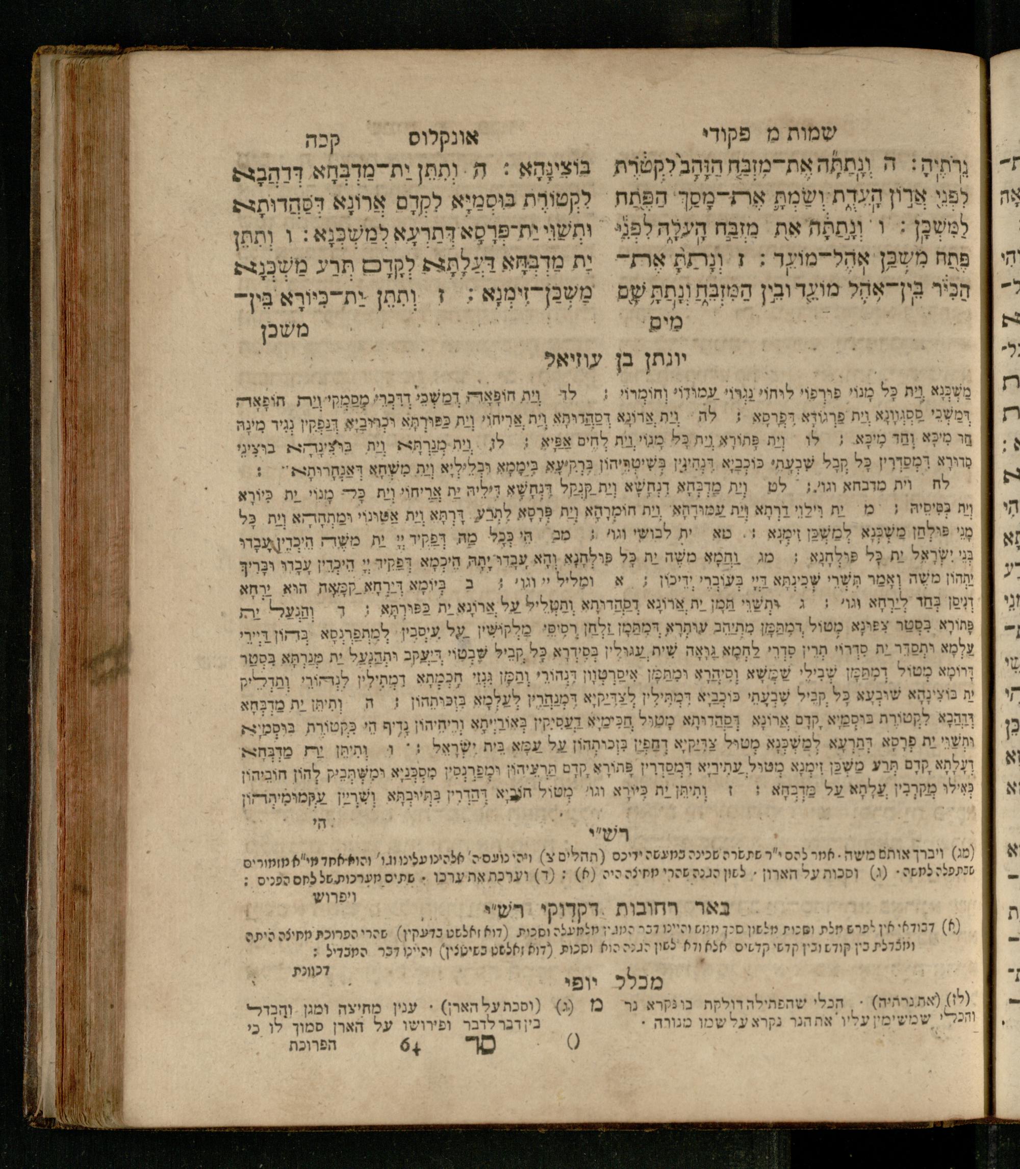 Sefer Shemot : ʿim 3 targumim ... pe. Rashi, u-ferush Rashbam u-ferush Mikhlal yofi min R. Shelomoh ben Melekh u-ferush Beʾer reḥovot ʿal diḳduḳe Rashi ... ṿe-Sefer ha-Ḥinukh me-Rabenu Aharon ha-Leṿi ... / huva le-vet ha-defus ʿa.y. ha-torani ha-mufla mo.h.r.R. Pinḥas Eliyahu ben ha-torani ha-manhig mo.h.r.R. Ḥayim Kats u-veno ha-torani ha-mufla mo.h.r.R. Shemuʾel Kats mi-ḳ.ḳ. Ṿilnaספר שמות : עם ג׳ תרגומים ... פירש״י, ופירוש רש״בם ופירוש מכלל יופי מן ר׳ שלמה בן מלך ופירוש באר רחובות על דקדוקי רש״י ... וספר החינוך מרבינו אהרן הלוי ... / הובא לבית הדפוס ע״י התורני המופלא מוה״רר פנחס אליהו בן התורני המנהיג מוה״רר חיים כ״ץ ובנו התורני המופלא מוה״רר שמואל כ״ץ מק״ק ווילנא