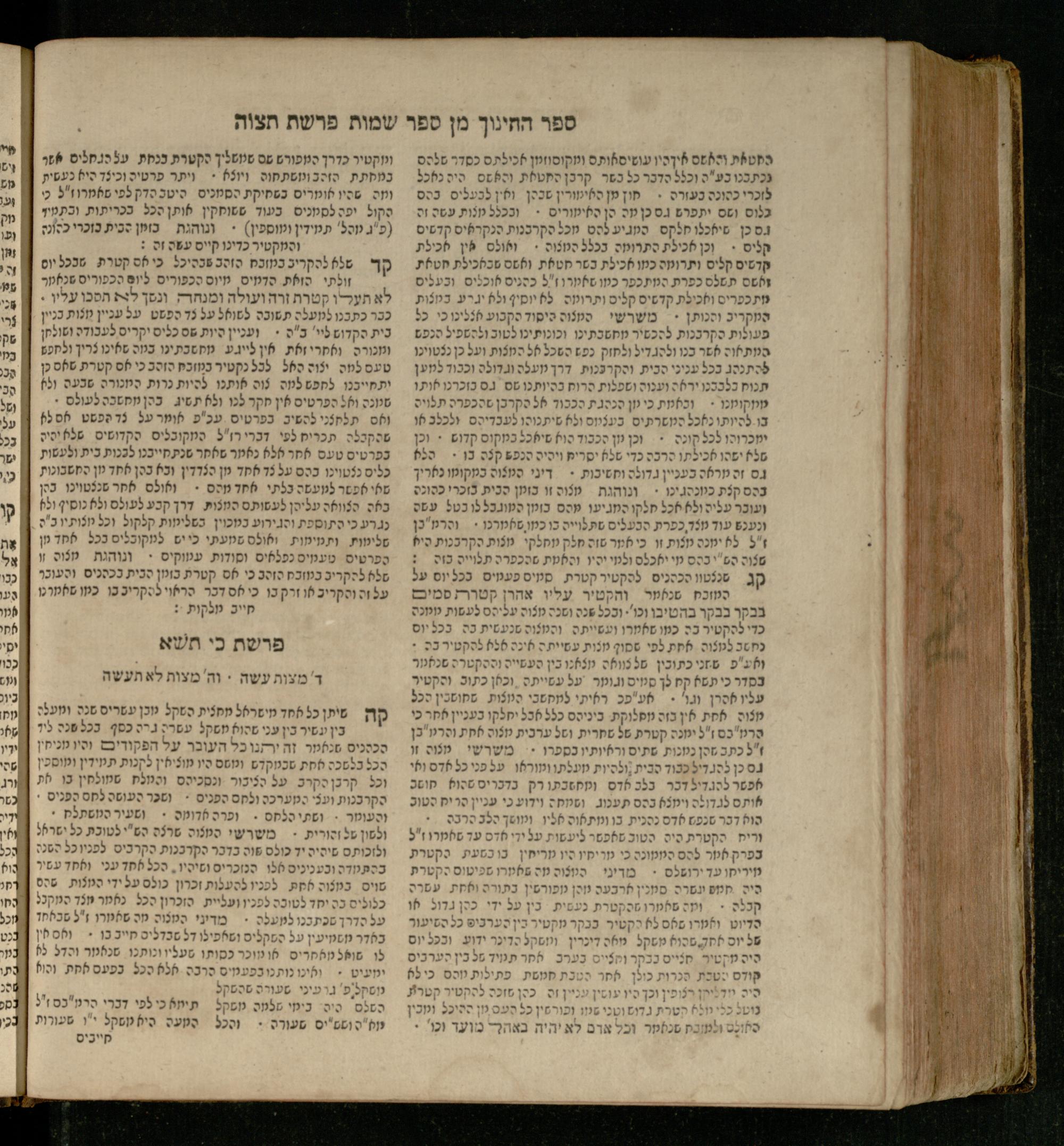 Sefer Shemot : ʿim 3 targumim ... pe. Rashi, u-ferush Rashbam u-ferush Mikhlal yofi min R. Shelomoh ben Melekh u-ferush Beʾer reḥovot ʿal diḳduḳe Rashi ... ṿe-Sefer ha-Ḥinukh me-Rabenu Aharon ha-Leṿi ... / huva le-vet ha-defus ʿa.y. ha-torani ha-mufla mo.h.r.R. Pinḥas Eliyahu ben ha-torani ha-manhig mo.h.r.R. Ḥayim Kats u-veno ha-torani ha-mufla mo.h.r.R. Shemuʾel Kats mi-ḳ.ḳ. Ṿilnaספר שמות : עם ג׳ תרגומים ... פירש״י, ופירוש רש״בם ופירוש מכלל יופי מן ר׳ שלמה בן מלך ופירוש באר רחובות על דקדוקי רש״י ... וספר החינוך מרבינו אהרן הלוי ... / הובא לבית הדפוס ע״י התורני המופלא מוה״רר פנחס אליהו בן התורני המנהיג מוה״רר חיים כ״ץ ובנו התורני המופלא מוה״רר שמואל כ״ץ מק״ק ווילנא