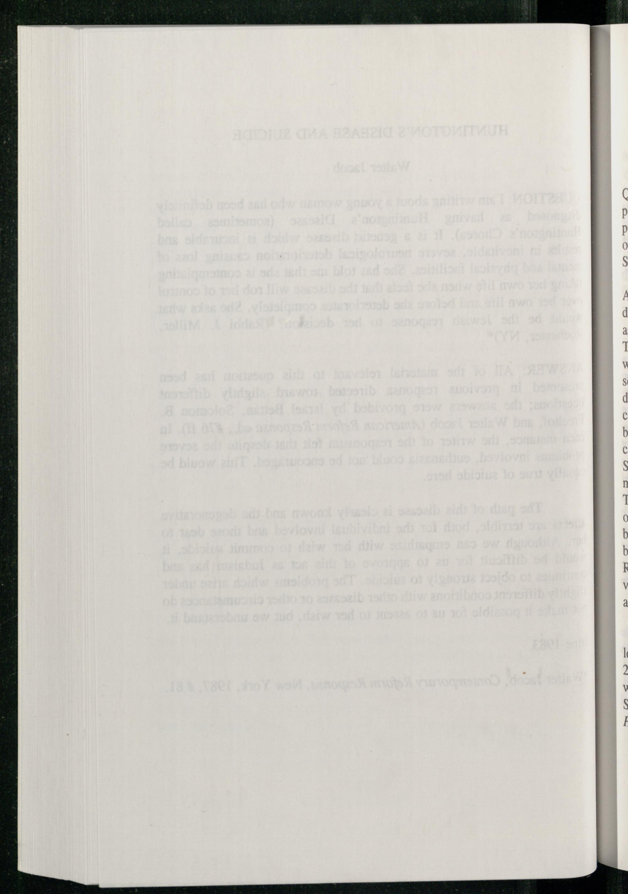 HUNTINGTON'S DISEASE AND SUICIDE