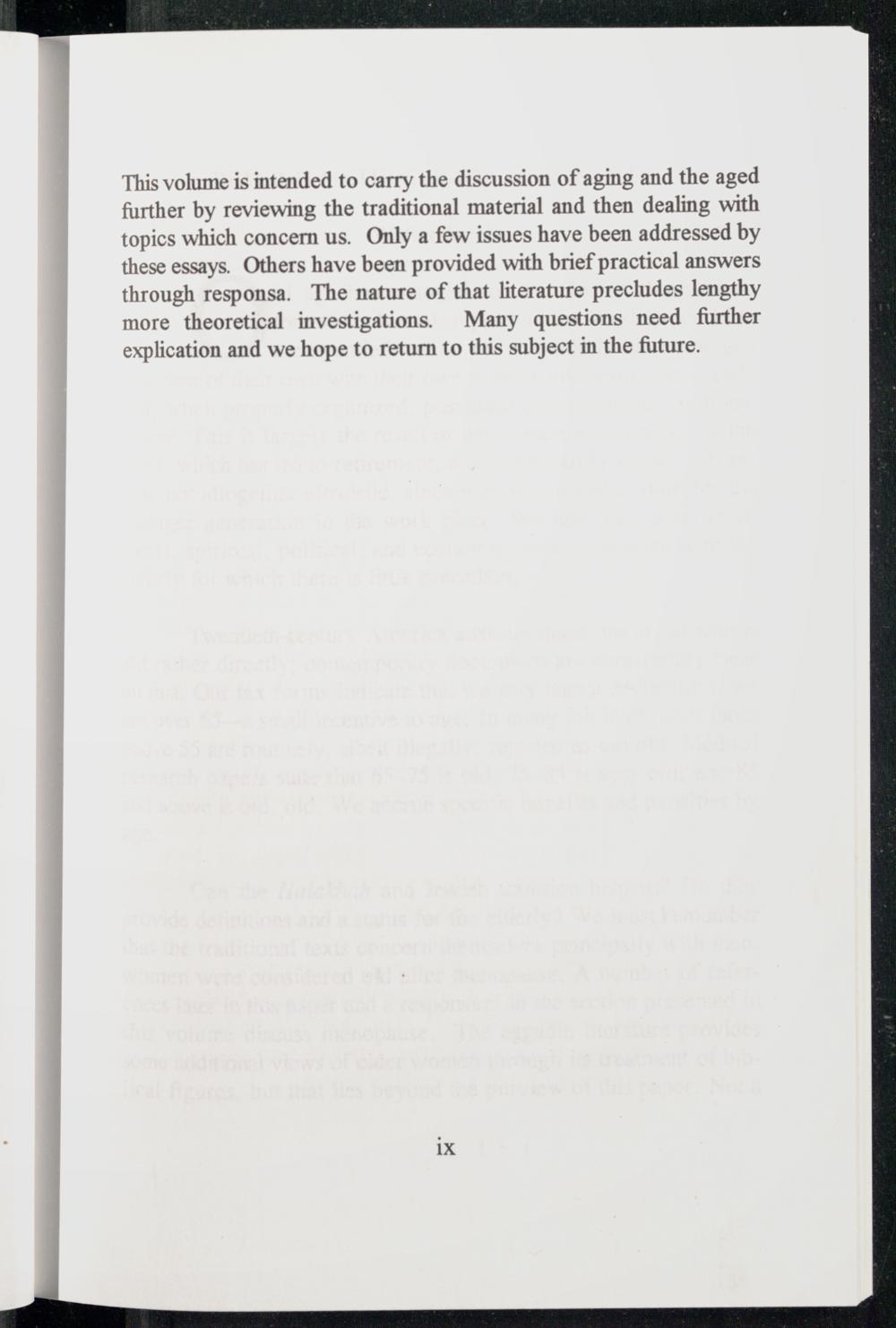 Aging and the aged in Jewish law : essays and responsa / edited by Walter Jacob and Moshe Zemer