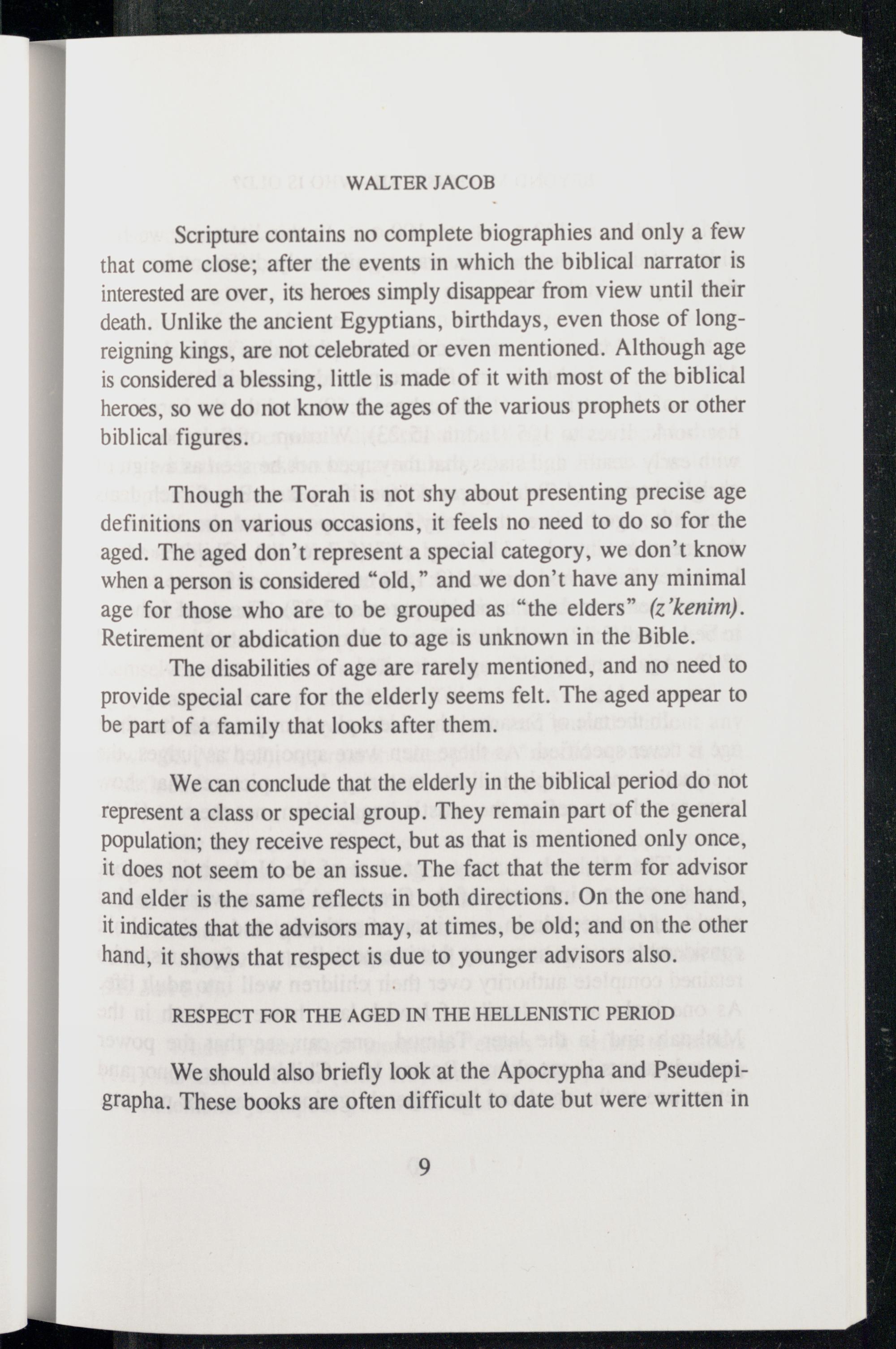 Aging and the aged in Jewish law : essays and responsa / edited by Walter Jacob and Moshe Zemer