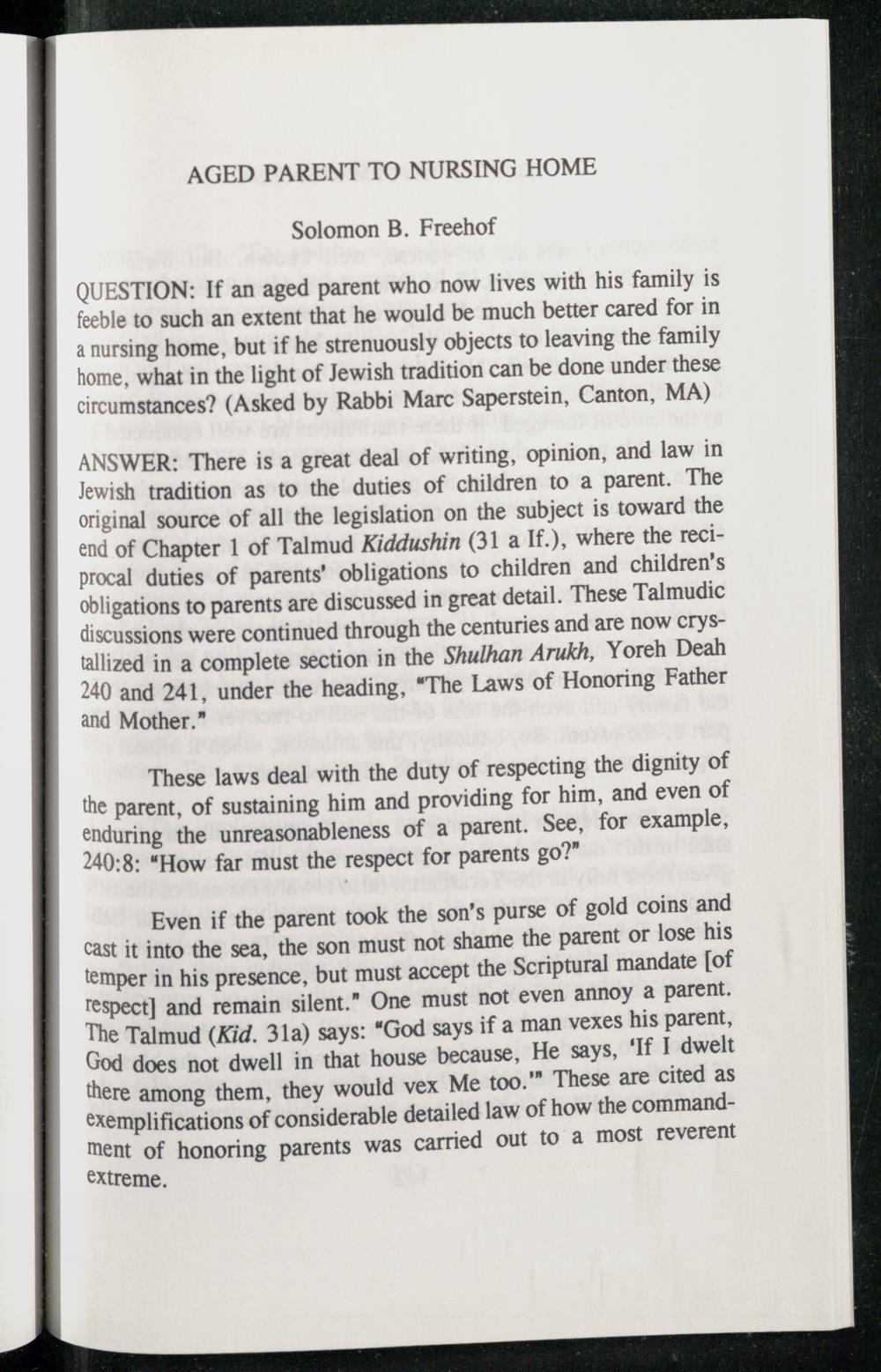 AGED PARENT TO NURSING HOME