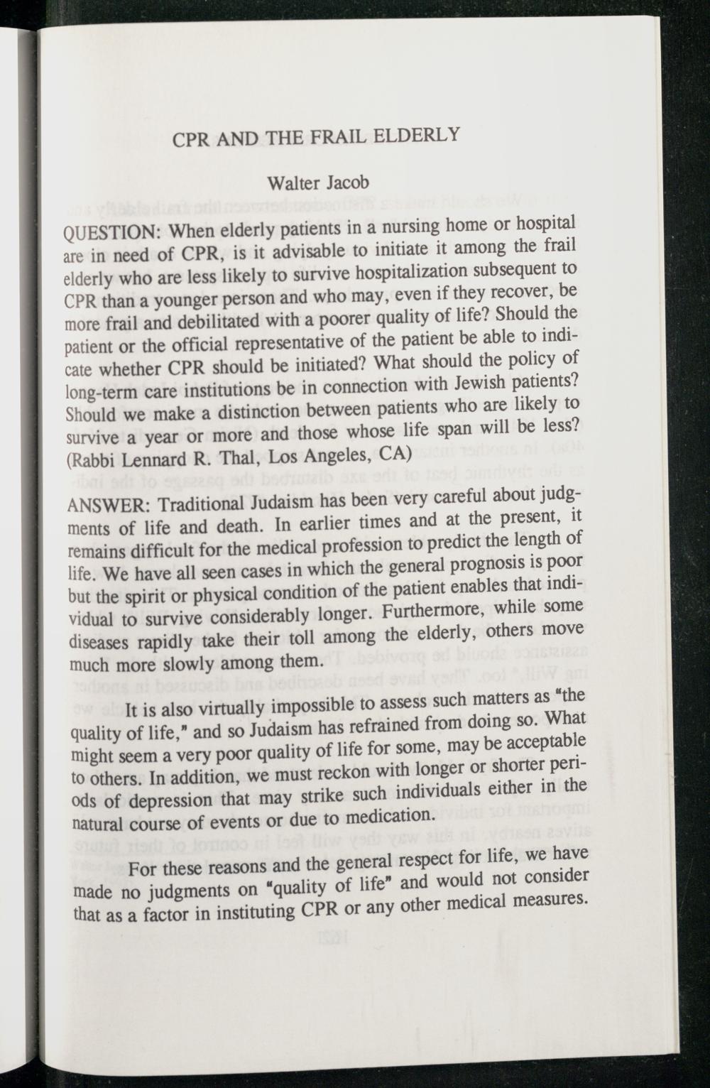 CPR AND THE FRAIL ELDERLY