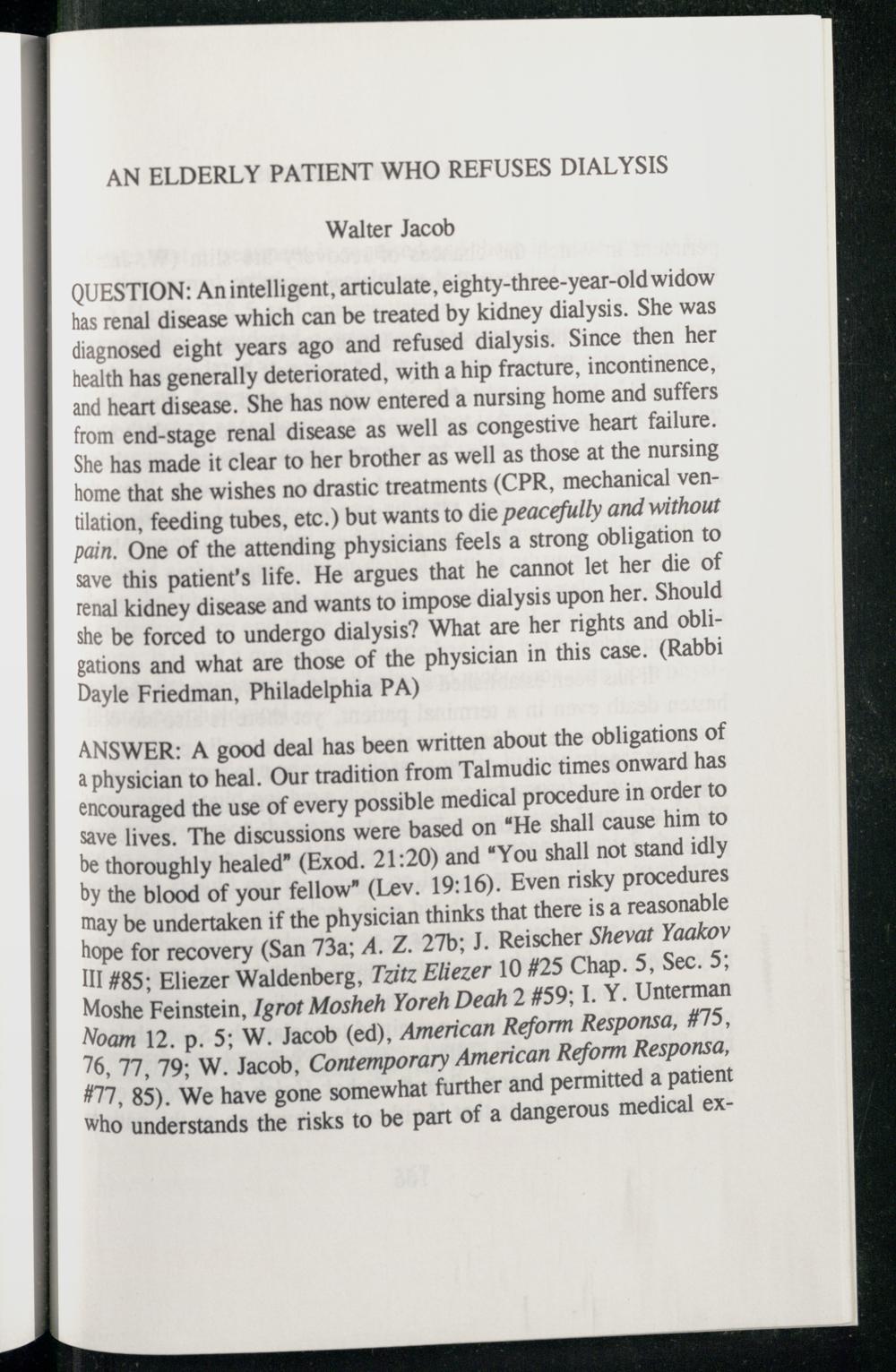 AN ELDERLY PATIENT WHO REFUSES DIALYSIS