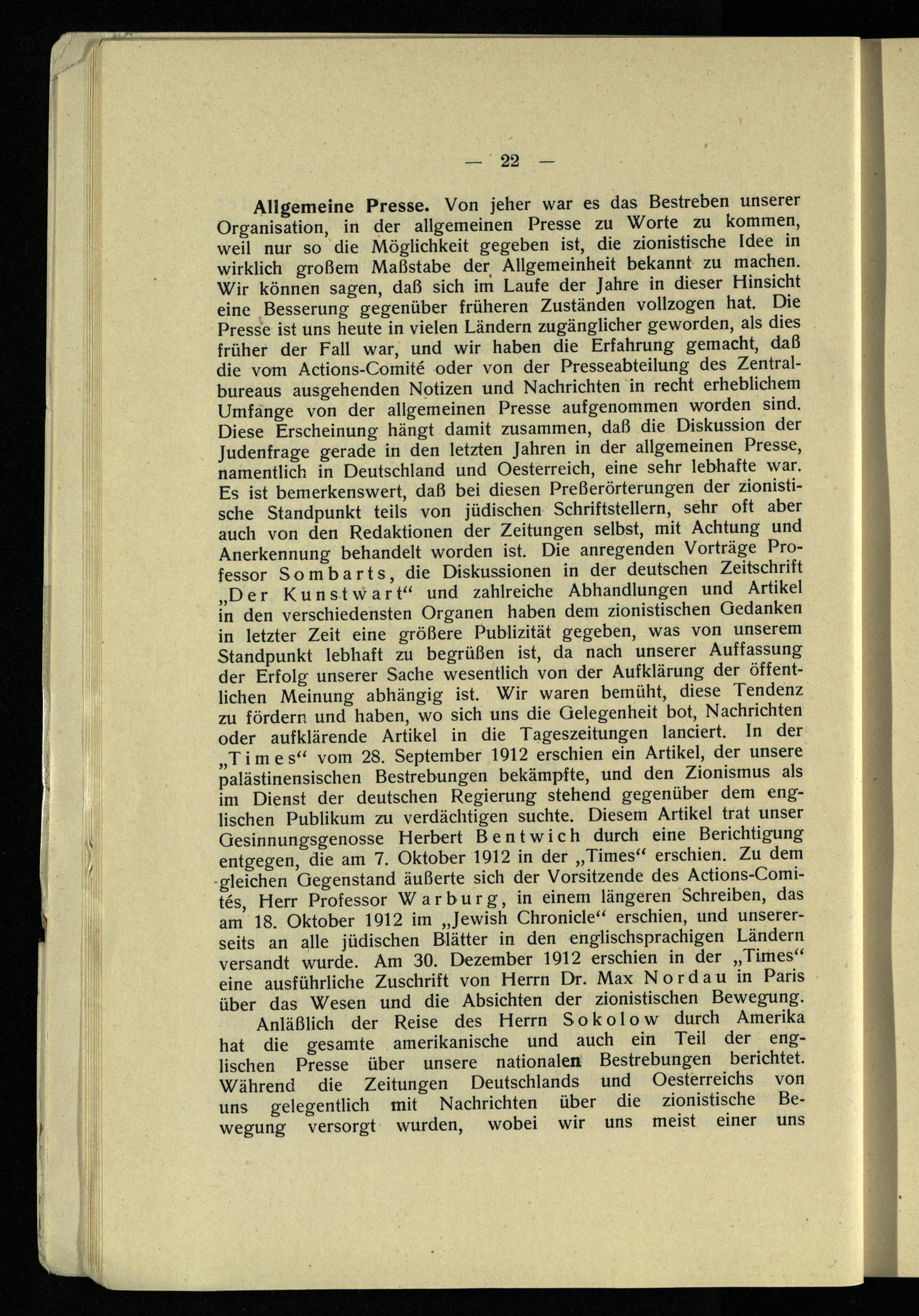 I. Die Palästinaarbeit der zionistischen Organisation
