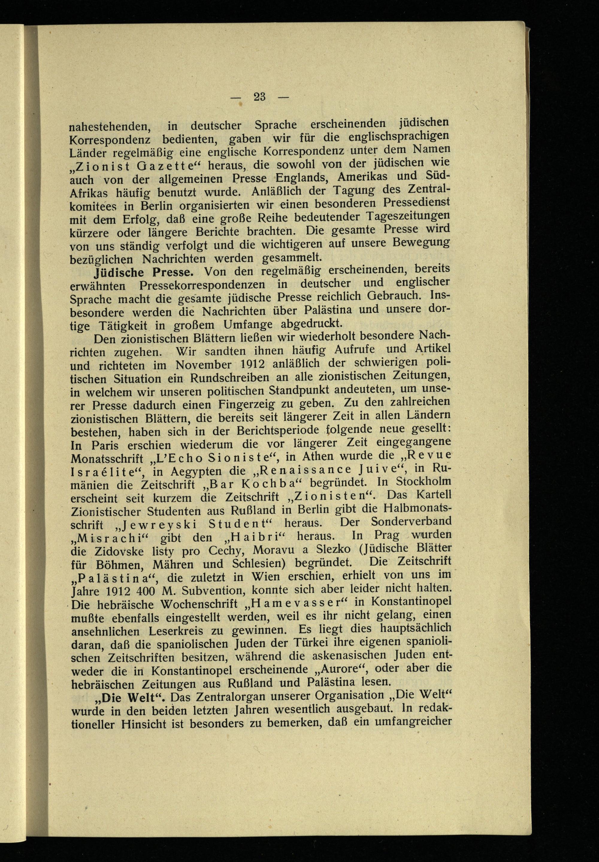 Bericht des Actions-Comités der Zionistischen Organisation an den XI. Zionisten-Kongress Wien : 2. bis 9. September 1913