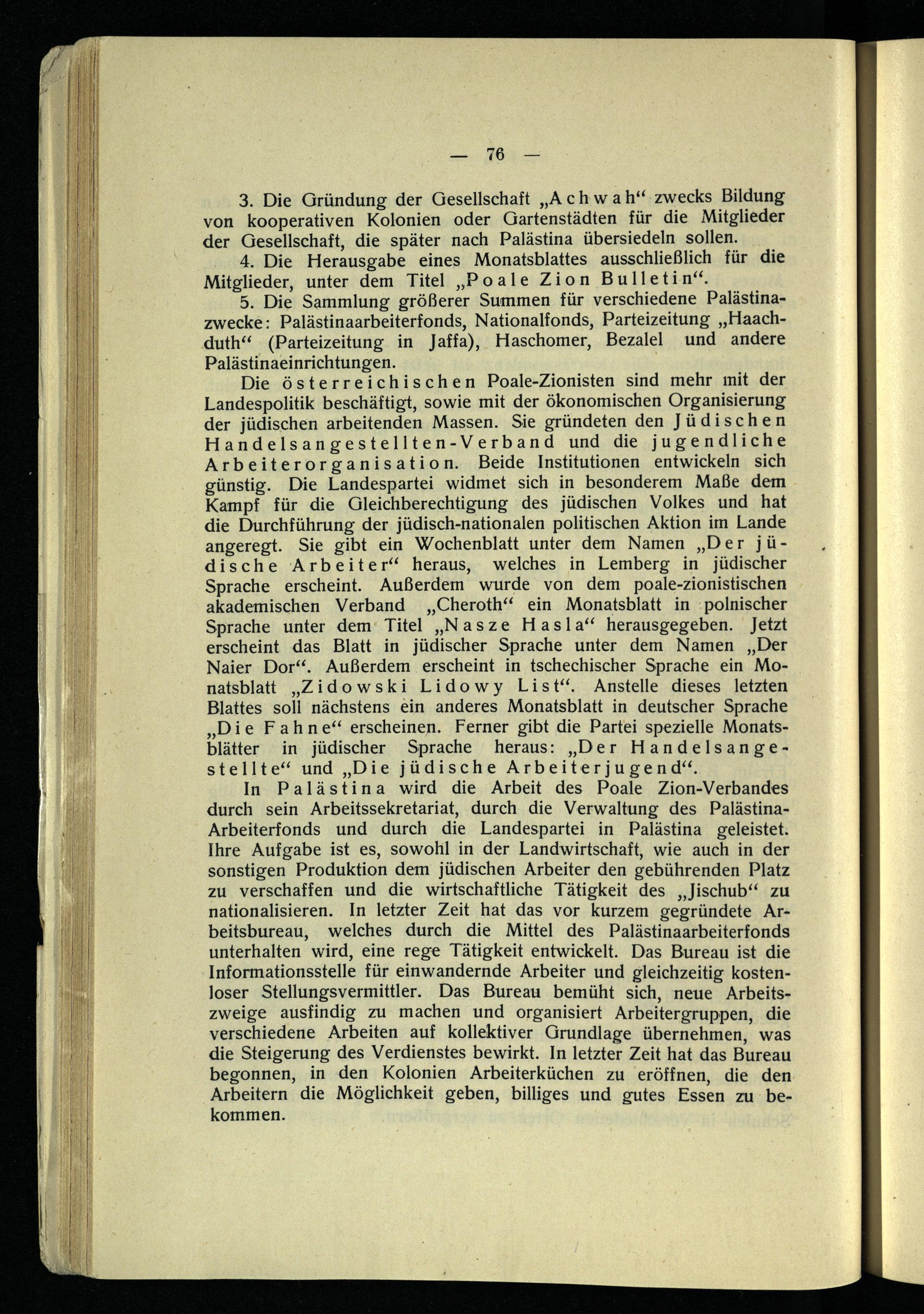 I. Die Palästinaarbeit der zionistischen Organisation