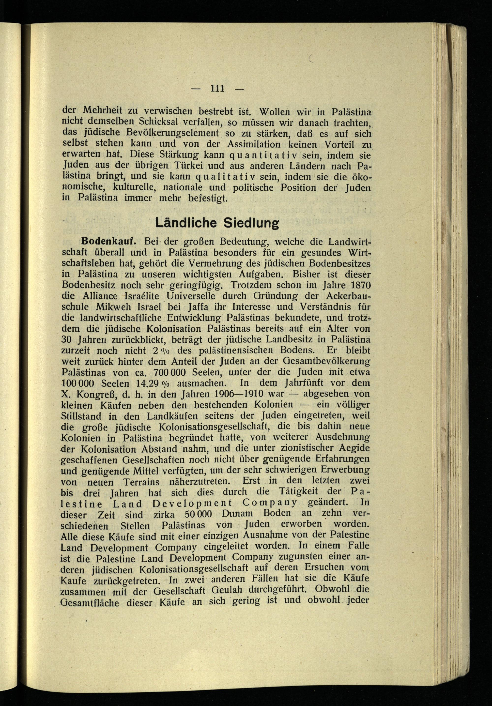 I. Die Palästinaarbeit der zionistischen Organisation