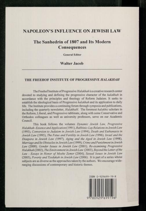 Napoleon's influence on Jewish law : the Sanhedrin of 1807 and its modern consequences / edited by Walter Jacob in association with Moshe Zemer