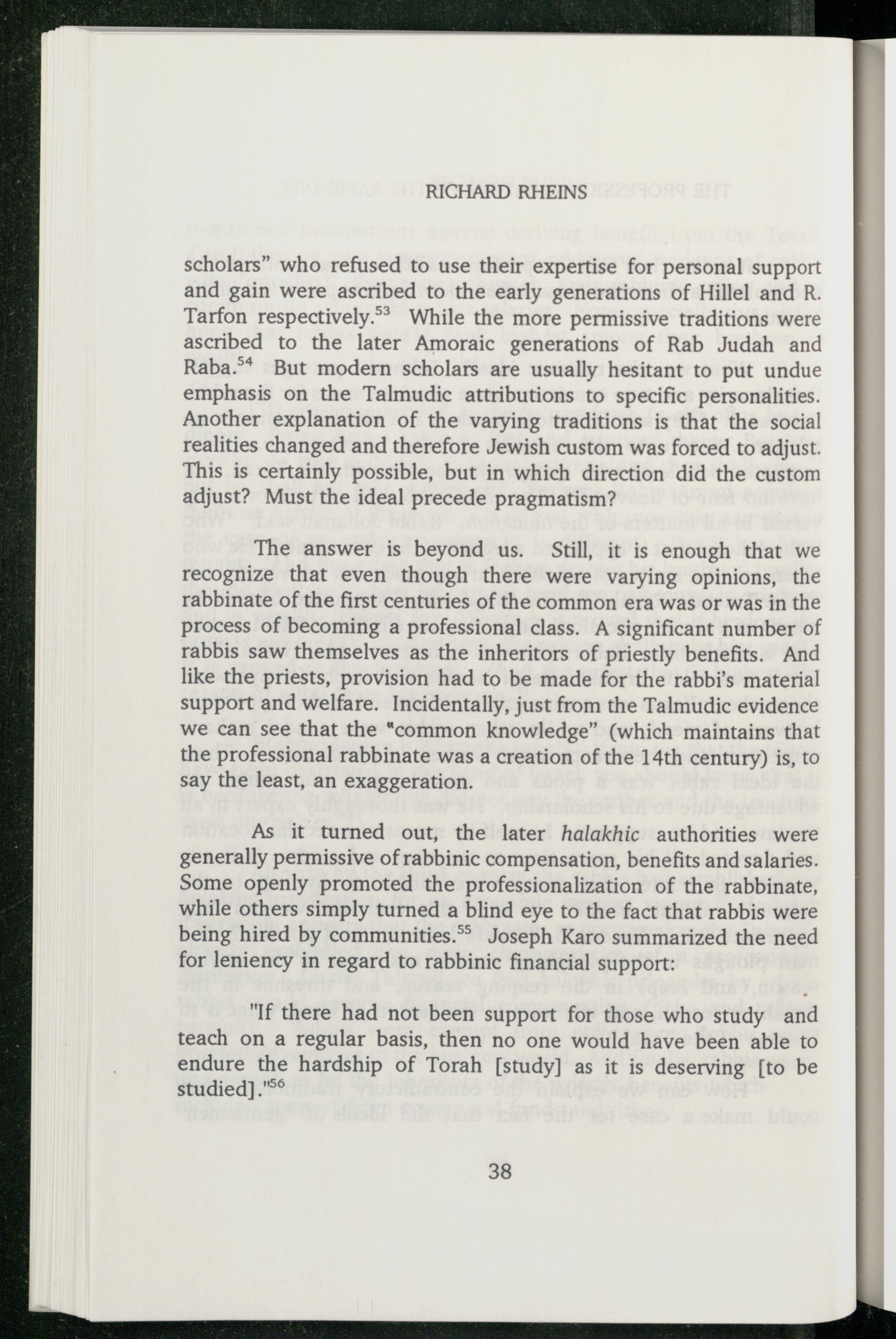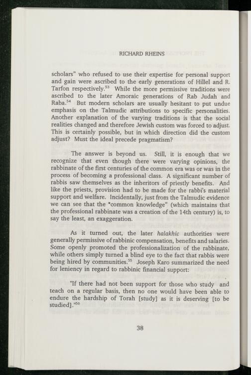 THE PROFESSIONALIZATION OF THE RABBINATE in the Talmud and the Halakhic Commentaries...