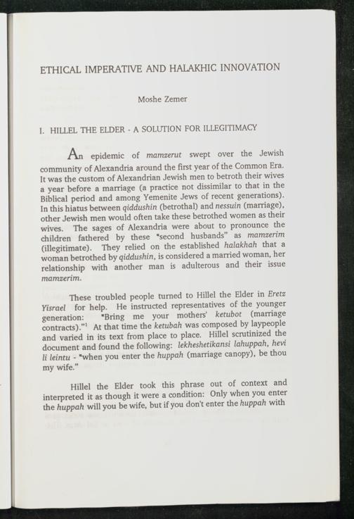 ETHICAL IMPERATIVE AND HALAKHIC INNOVATION