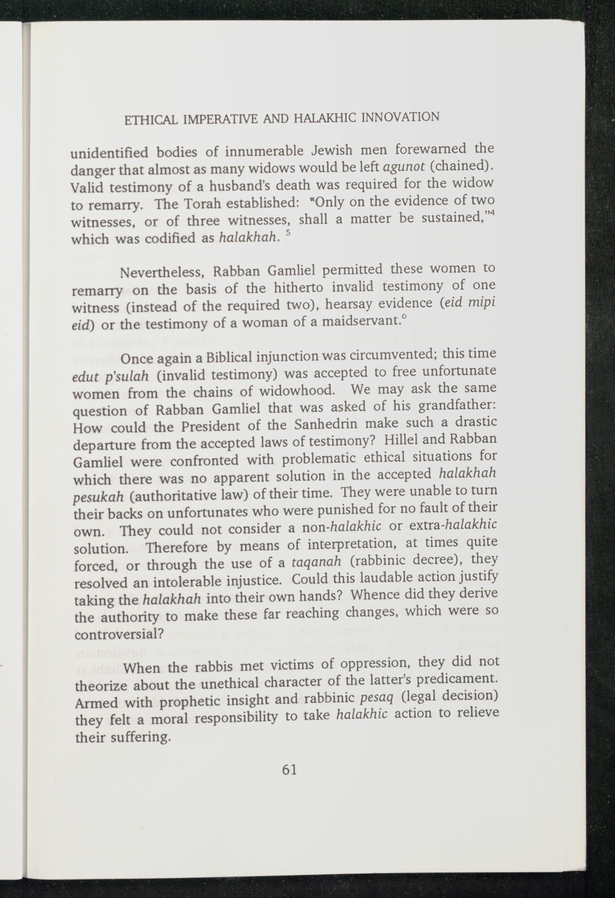 ETHICAL IMPERATIVE AND HALAKHIC INNOVATION