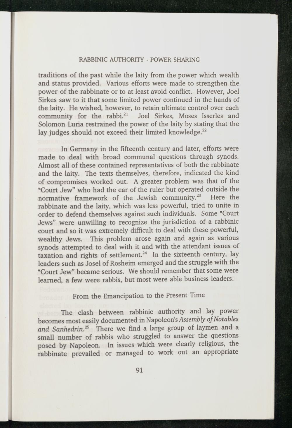 RABBINIC AUTHORITY - POWER SHARING