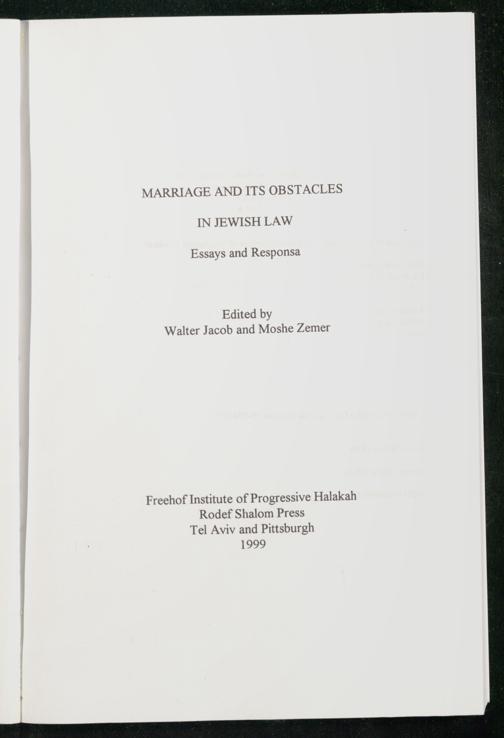Marriage and its obstacles in Jewish law : essays and responsa / edited by Walter Jacob and Moshe Zemer