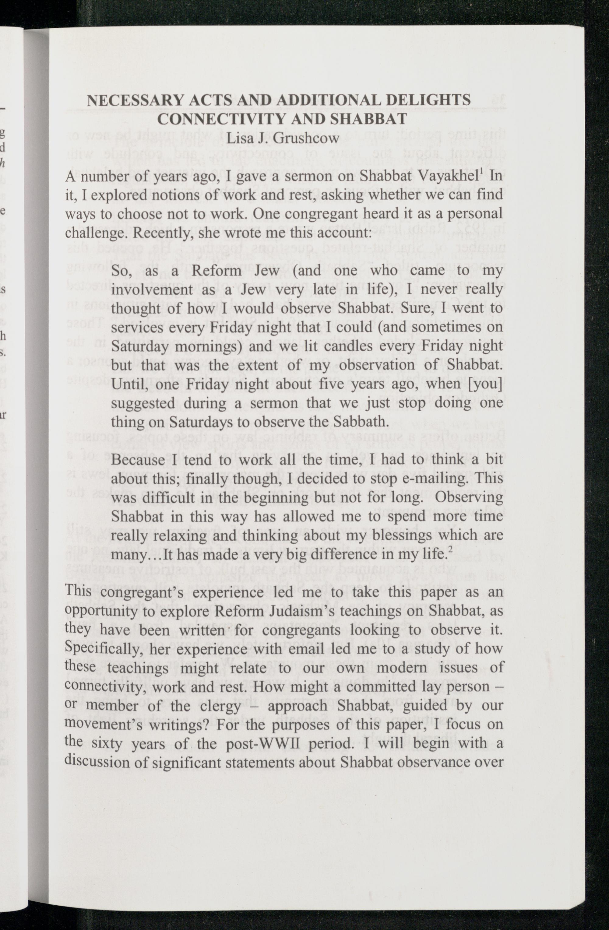 NECESSARY ACTS AND ADDITIONAL DELIGHTS CONNECTIVITY AND SHABBAT
