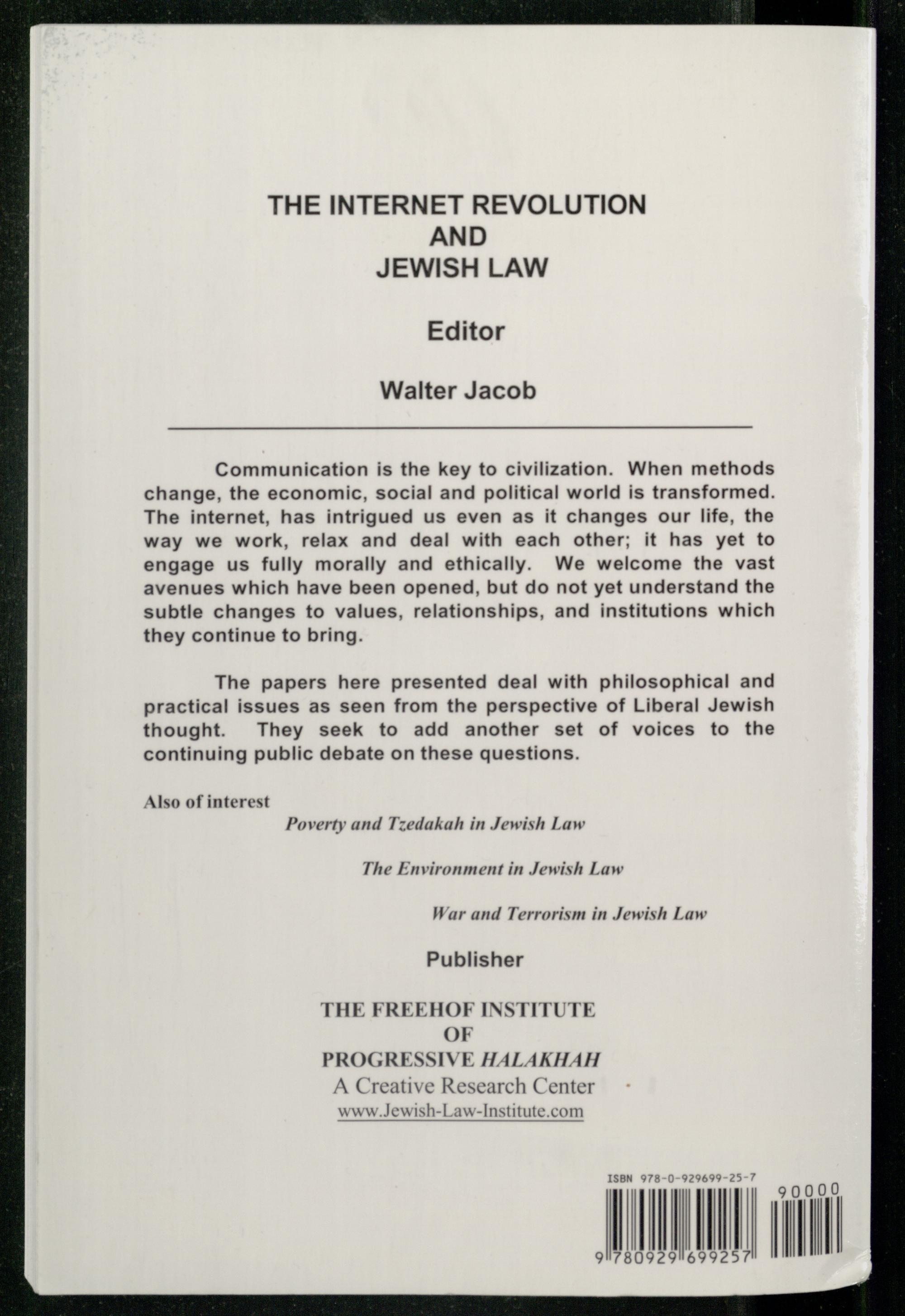 The internet revolution and Jewish law / edited by Walter Jacob