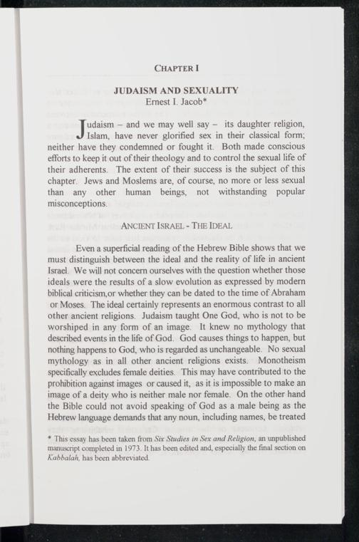 Chapter I. JUDAISM AND SEXUALITY