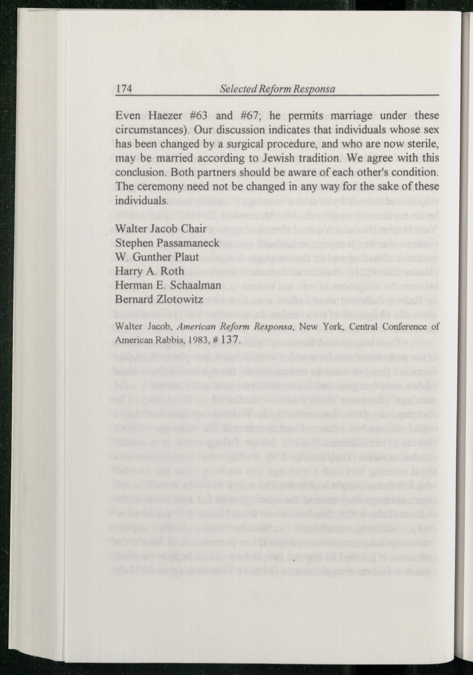 SELECTED REFORM RESPONSA