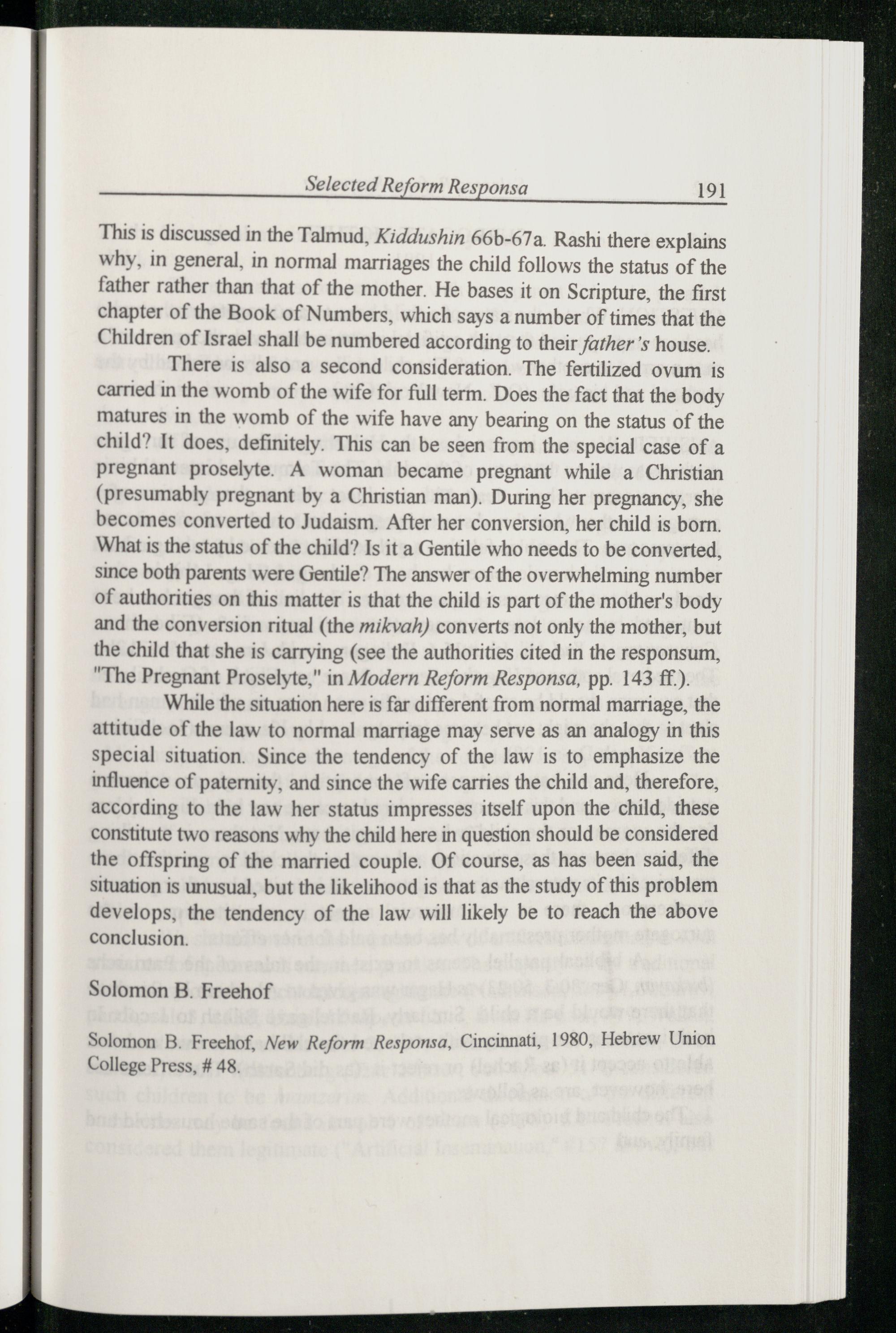 SELECTED REFORM RESPONSA