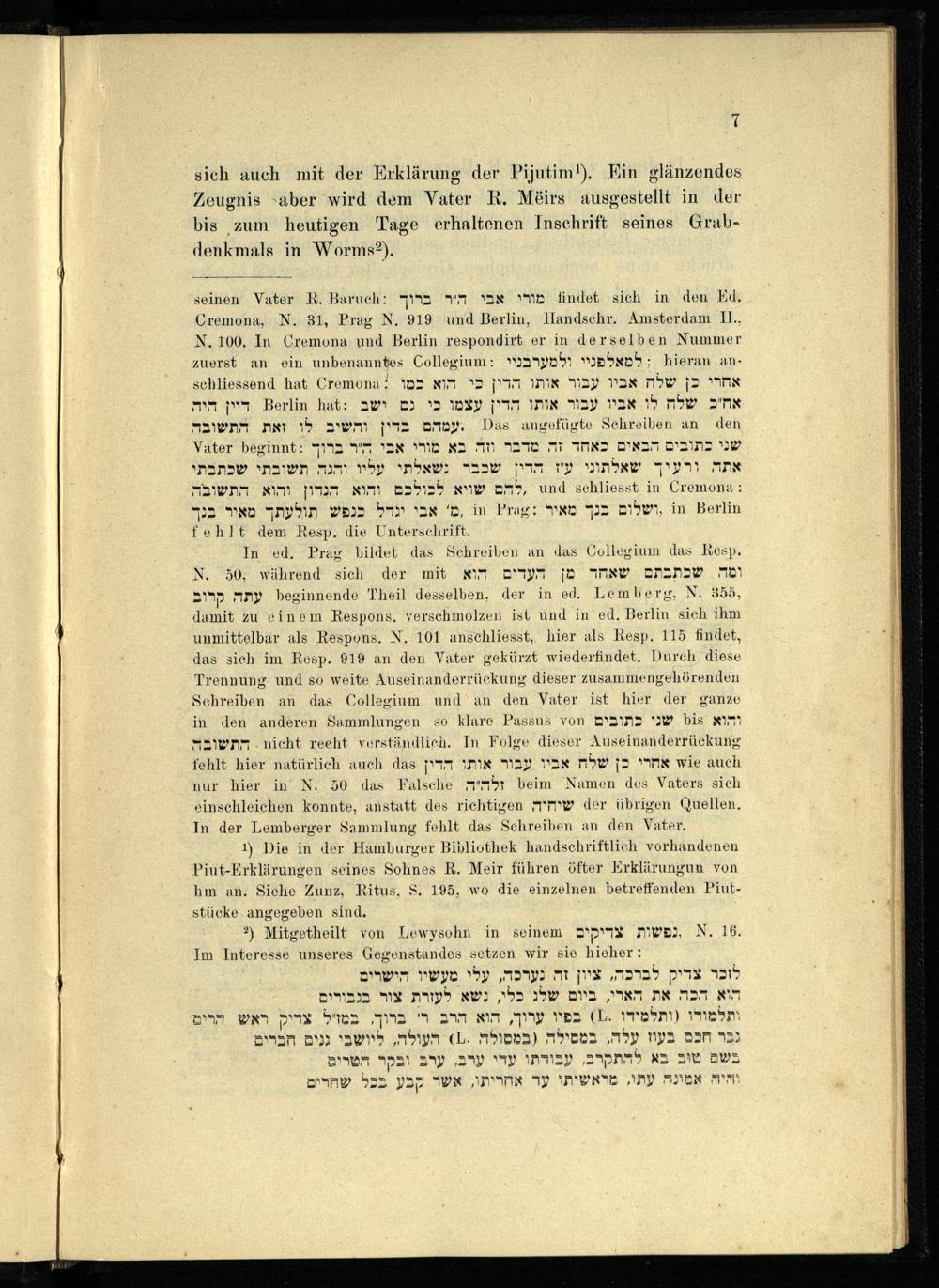 VIII. Capitel. Einiges über R. Meir's religiöse Richtung, über seine Nachkommen und Schüler.