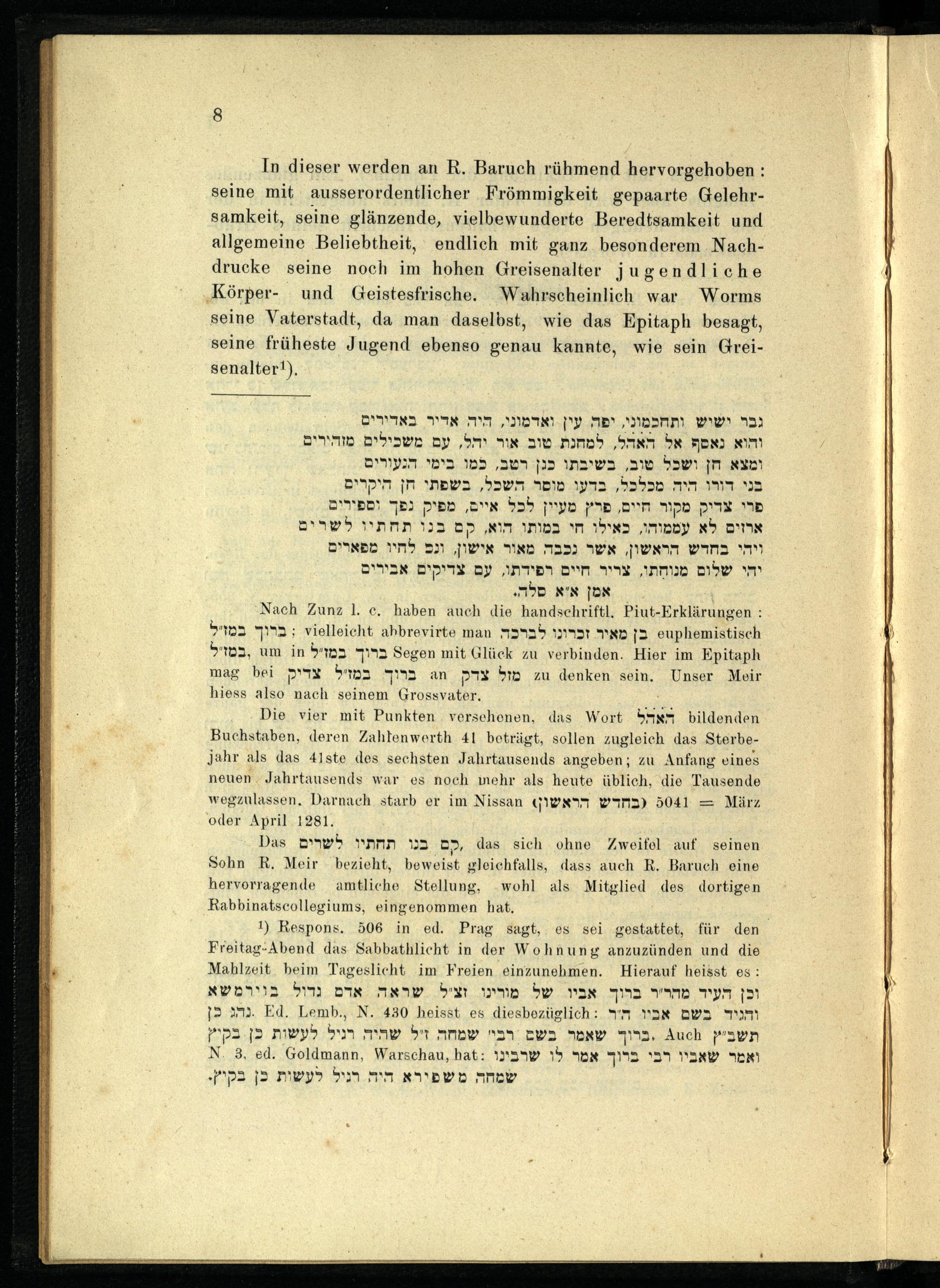 VIII. Capitel. Einiges über R. Meir's religiöse Richtung, über seine Nachkommen und Schüler.
