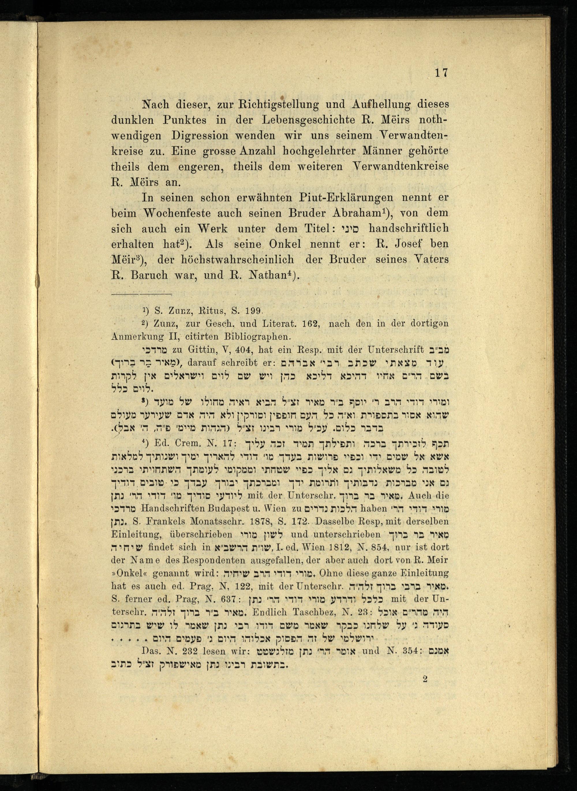 VIII. Capitel. Einiges über R. Meir's religiöse Richtung, über seine Nachkommen und Schüler.