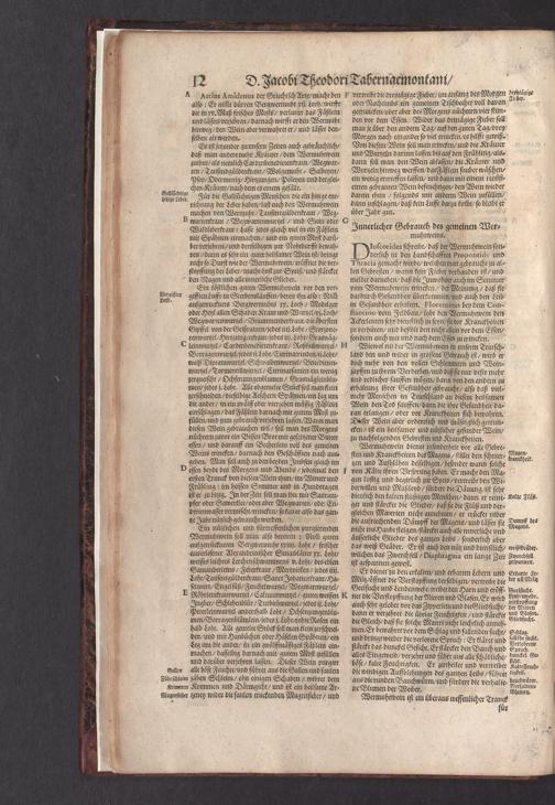 D. Jacobi Theodori Tabernaemontani, Neu vollkommen Kräuter-Buch : Darinnen Uber 3000. Kräuter/ mit schönen und kunstlichen Figuren/ auch deren Underscheid und Würckung/ samt ihren Namen in mancherley Sprachen/ beschrieben: Desgleichen auch/ wie dieselbige in allerhand Kranckheiten/ beyde der Menschen und des Viehs/ sollen angewendet und gebraucht werden/ angezeigt wird. Erstlichen durch Casparum Bauhinum D. und Profess. Basil. mit vielen neuen Figuren/ nutzlichen Artzneyen/ und anderem/ mit sonderem Fleis gebesseret/ Zum Andern Durch Hieronymum Bauhinum D. und Profess. Basil. mit sehr nutzlichen Marginalien, Synonimis, neuen Registeren und anderem vermehrt