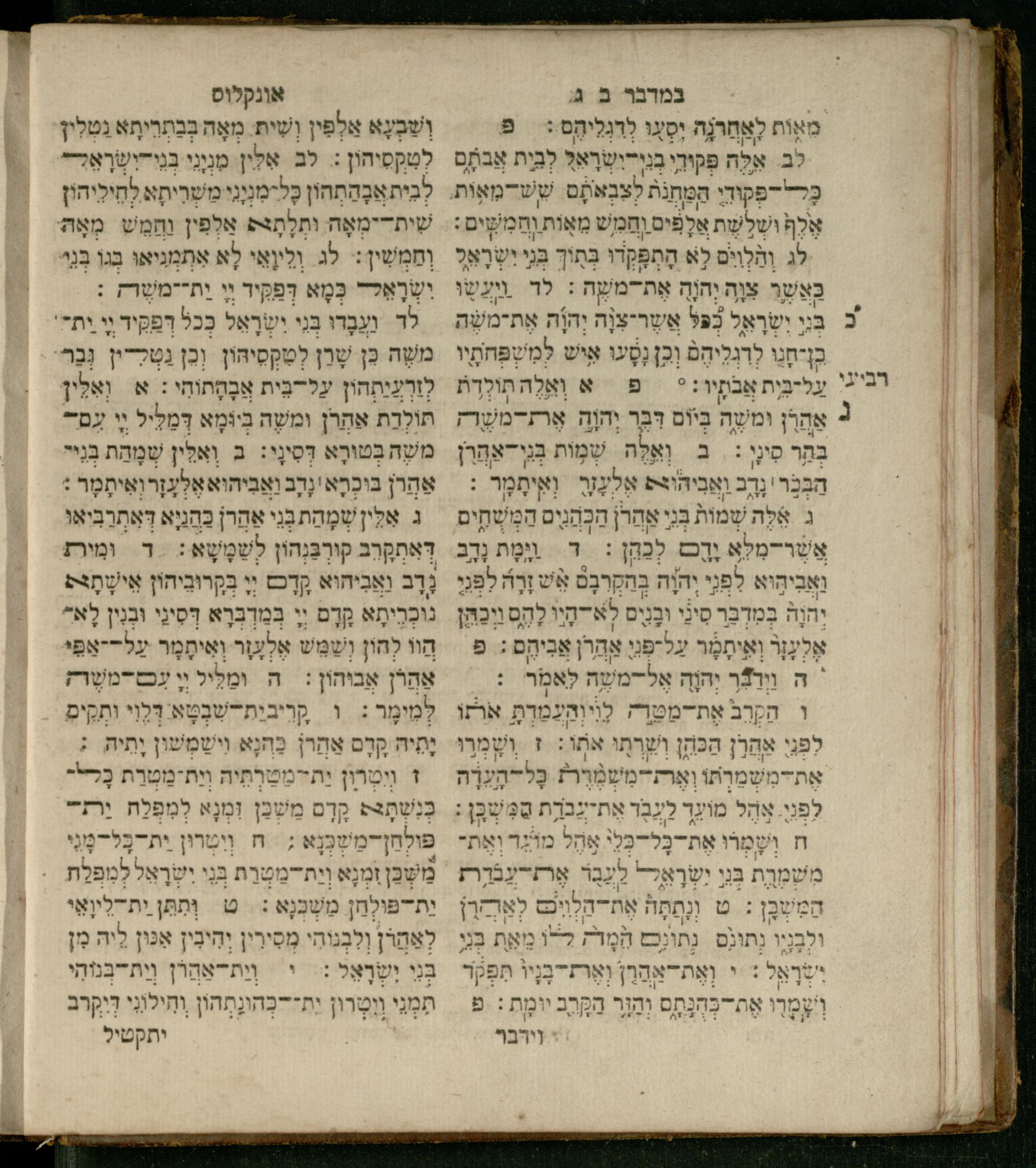 Sefer Ba-midbar : ʿim 3 targumim ... pe. Rashi, u-ferush Rashbam u-ferush Mikhlal yofi min R. Shelomoh ben Melekh u-ferush Beʾer reḥovot ʿal diḳduḳe Rashi ... ṿe-Sefer ha-Ḥinukh me-Rabenu Aharon ha-Leṿi ... / huva le-vet ha-defus ʿa.y. ha-torani ha-mufla mo.h.r.R. Pinḥas Eliyahu ben ha-torani ha-manhig mo.h.r.R. Ḥayim Kats u-veno ha-torani ha-mufla mo.h.r.R. Shemuʾel Kats mi-ḳ.ḳ. Ṿilnaספר במדבר : עם ג׳ תרגומים ... פירש״י, ופירוש רש״בם ופירוש מכלל יופי מן ר׳ שלמה בן מלך ופירוש באר רחובות על דקדוקי רש״י ... וספר החינוך מרבינו אהרן הלוי ... / הובא לבית הדפוס ע״י התורני המופלא מוה״רר פנחס אליהו בן התורני המנהיג מוה״רר חיים כ״ץ ובנו התורני המופלא מוה״רר שמואל כ״ץ מק״ק ווילנא