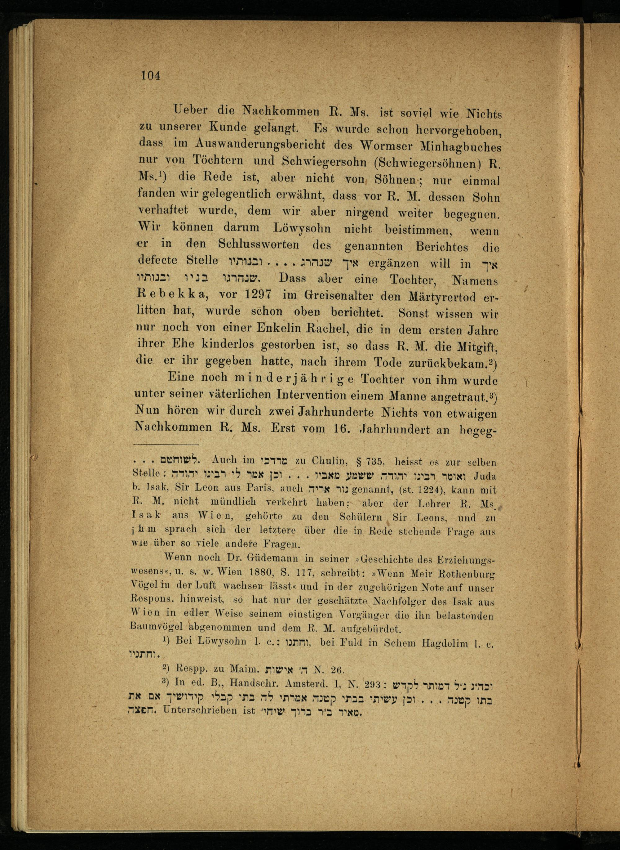 VIII. Capitel. Einiges über R. Meir's religiöse Richtung, über seine Nachkommen und Schüler.
