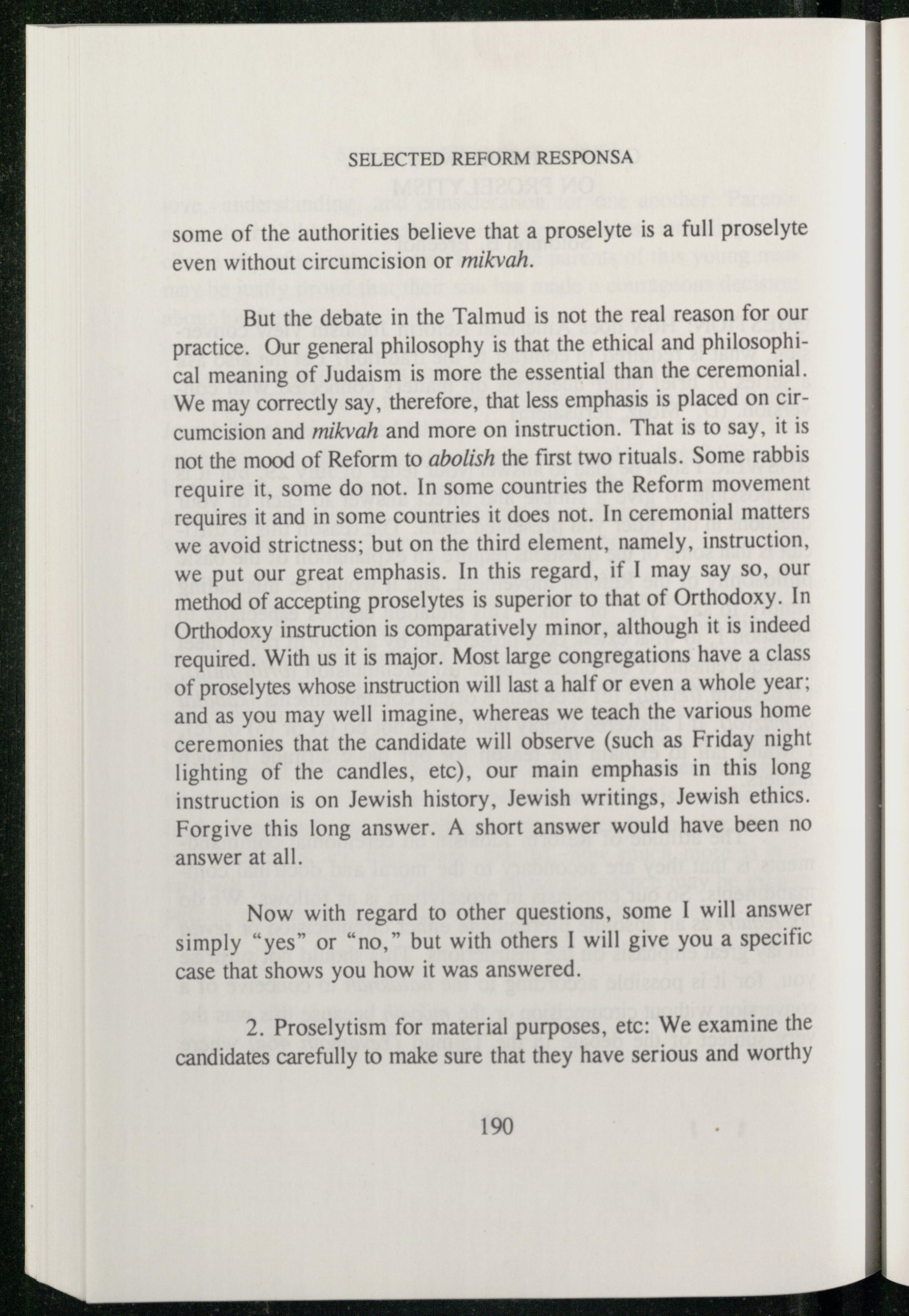 SELECTED REFORM RESPONSA