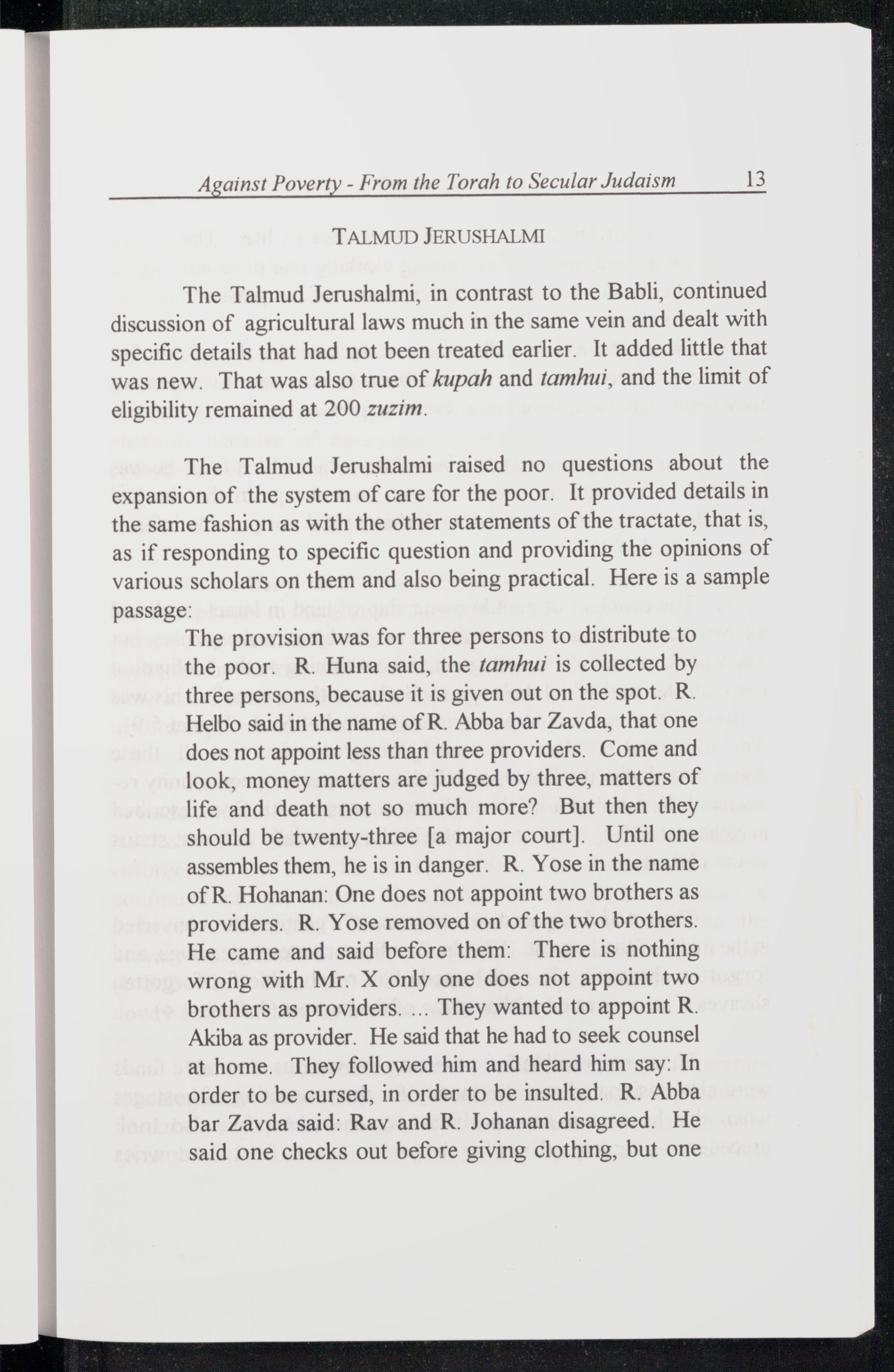 Chapter I. AGAINST POVERTY. From the Torah to Secular Judaism