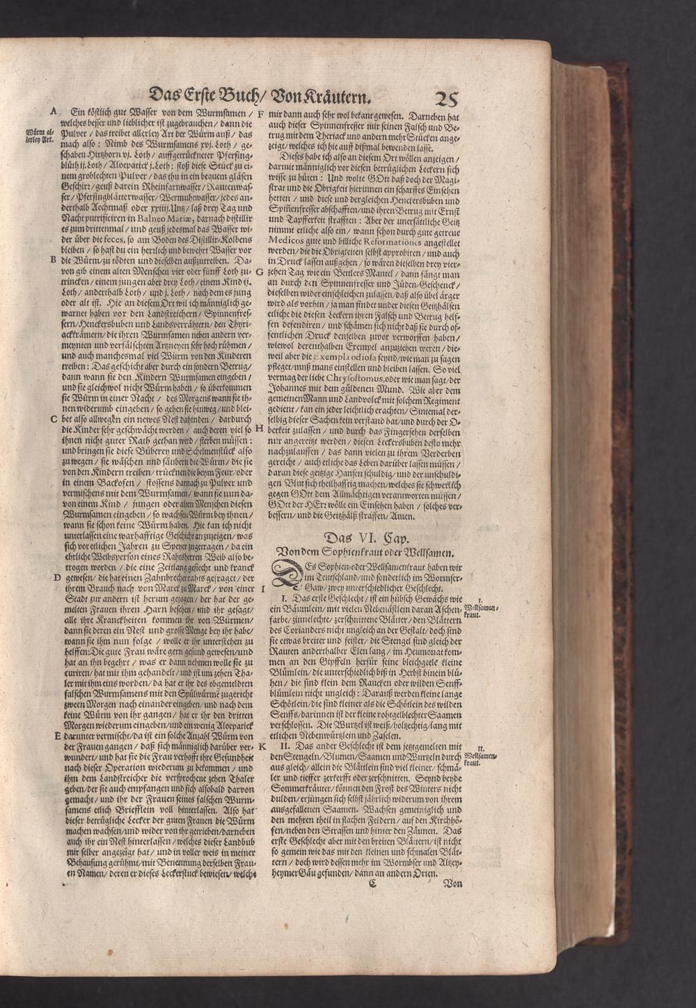 D. Jacobi Theodori Tabernaemontani, Neu vollkommen Kräuter-Buch : Darinnen Uber 3000. Kräuter/ mit schönen und kunstlichen Figuren/ auch deren Underscheid und Würckung/ samt ihren Namen in mancherley Sprachen/ beschrieben: Desgleichen auch/ wie dieselbige in allerhand Kranckheiten/ beyde der Menschen und des Viehs/ sollen angewendet und gebraucht werden/ angezeigt wird. Erstlichen durch Casparum Bauhinum D. und Profess. Basil. mit vielen neuen Figuren/ nutzlichen Artzneyen/ und anderem/ mit sonderem Fleis gebesseret/ Zum Andern Durch Hieronymum Bauhinum D. und Profess. Basil. mit sehr nutzlichen Marginalien, Synonimis, neuen Registeren und anderem vermehrt