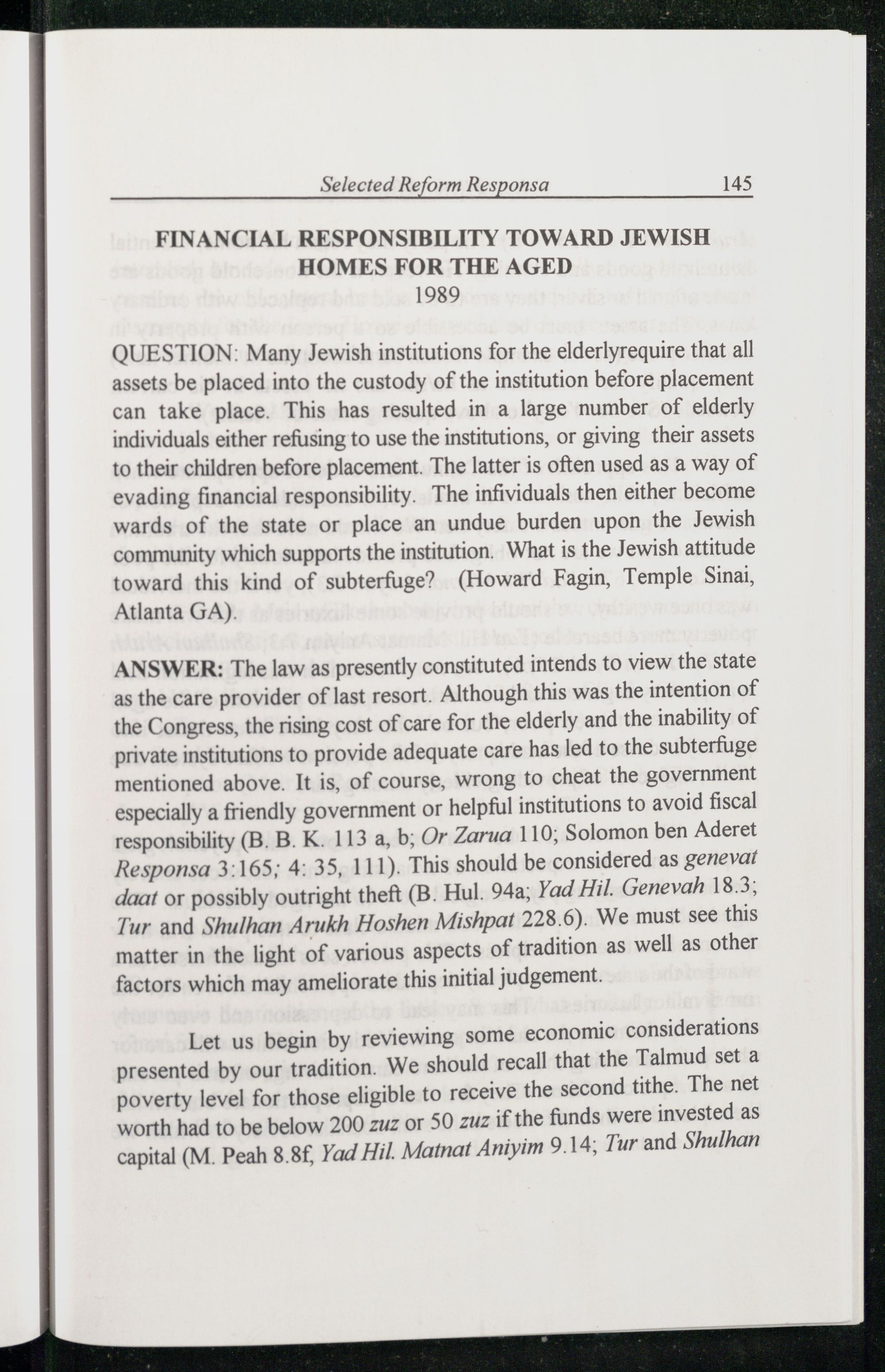 FINANCIAL RESPONSIBILITY TOWARD JEWISH HOMES FOR THE AGED 1989