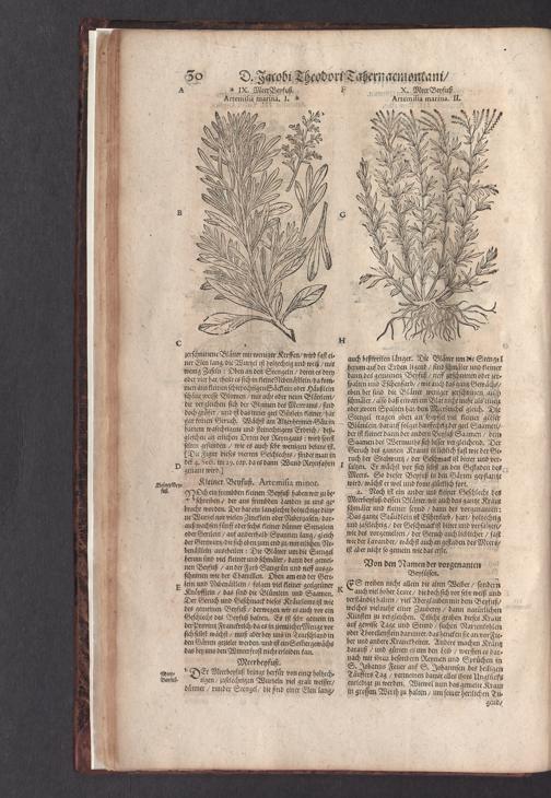 D. Jacobi Theodori Tabernaemontani, Neu vollkommen Kräuter-Buch : Darinnen Uber 3000. Kräuter/ mit schönen und kunstlichen Figuren/ auch deren Underscheid und Würckung/ samt ihren Namen in mancherley Sprachen/ beschrieben: Desgleichen auch/ wie dieselbige in allerhand Kranckheiten/ beyde der Menschen und des Viehs/ sollen angewendet und gebraucht werden/ angezeigt wird. Erstlichen durch Casparum Bauhinum D. und Profess. Basil. mit vielen neuen Figuren/ nutzlichen Artzneyen/ und anderem/ mit sonderem Fleis gebesseret/ Zum Andern Durch Hieronymum Bauhinum D. und Profess. Basil. mit sehr nutzlichen Marginalien, Synonimis, neuen Registeren und anderem vermehrt