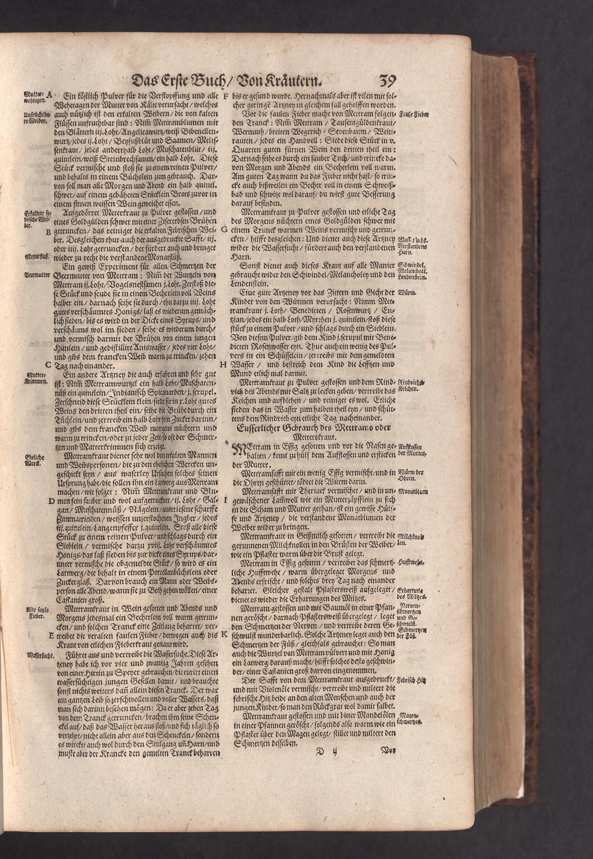D. Jacobi Theodori Tabernaemontani, Neu vollkommen Kräuter-Buch : Darinnen Uber 3000. Kräuter/ mit schönen und kunstlichen Figuren/ auch deren Underscheid und Würckung/ samt ihren Namen in mancherley Sprachen/ beschrieben: Desgleichen auch/ wie dieselbige in allerhand Kranckheiten/ beyde der Menschen und des Viehs/ sollen angewendet und gebraucht werden/ angezeigt wird. Erstlichen durch Casparum Bauhinum D. und Profess. Basil. mit vielen neuen Figuren/ nutzlichen Artzneyen/ und anderem/ mit sonderem Fleis gebesseret/ Zum Andern Durch Hieronymum Bauhinum D. und Profess. Basil. mit sehr nutzlichen Marginalien, Synonimis, neuen Registeren und anderem vermehrt