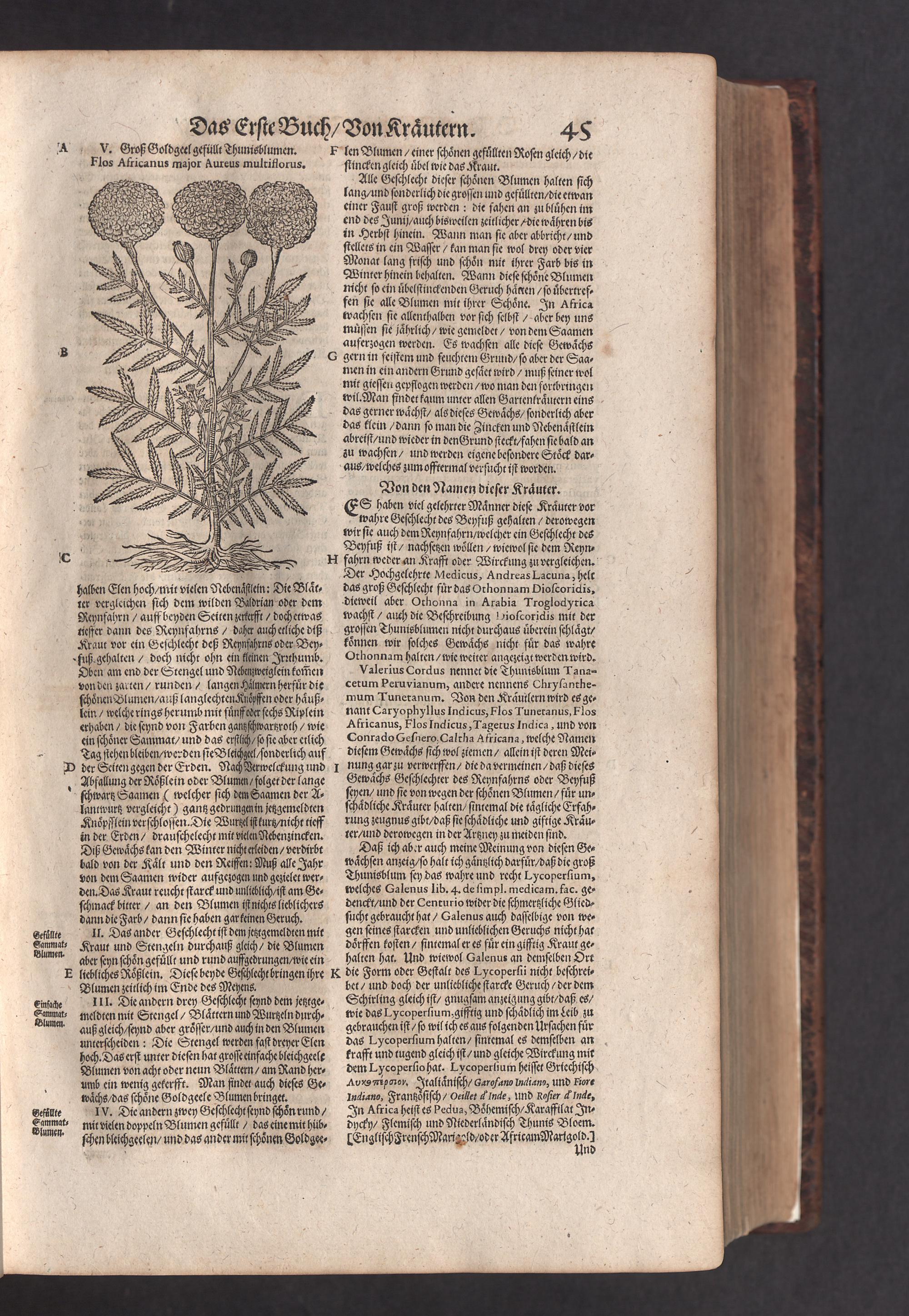 D. Jacobi Theodori Tabernaemontani, Neu vollkommen Kräuter-Buch : Darinnen Uber 3000. Kräuter/ mit schönen und kunstlichen Figuren/ auch deren Underscheid und Würckung/ samt ihren Namen in mancherley Sprachen/ beschrieben: Desgleichen auch/ wie dieselbige in allerhand Kranckheiten/ beyde der Menschen und des Viehs/ sollen angewendet und gebraucht werden/ angezeigt wird. Erstlichen durch Casparum Bauhinum D. und Profess. Basil. mit vielen neuen Figuren/ nutzlichen Artzneyen/ und anderem/ mit sonderem Fleis gebesseret/ Zum Andern Durch Hieronymum Bauhinum D. und Profess. Basil. mit sehr nutzlichen Marginalien, Synonimis, neuen Registeren und anderem vermehrt