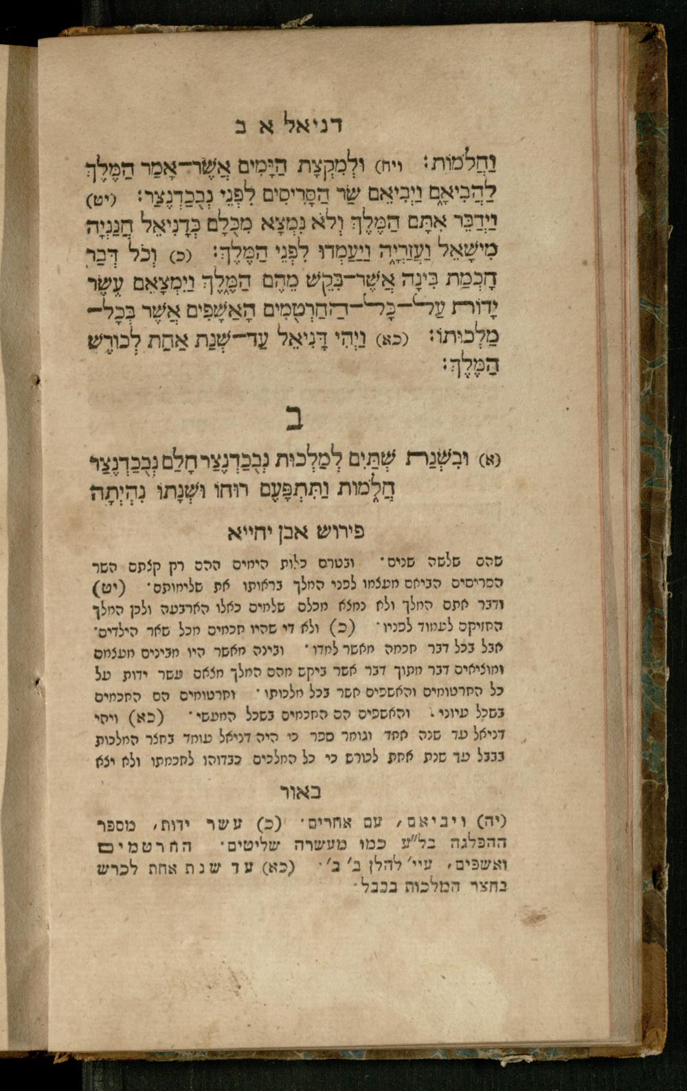 Sefer Daniʾel : meturgam bi-leshon Ashkenazi / me-et Ṿolf ben Yosef u-mevoʾar me-et Mosheh ben Uri Feivesh ṿe-nilṿeh elaṿ perush ha-Rav Ibn Yaḥyaספר דניאל : מתורגם בלשון אשכנזי / מאת וואלף בן יוסף ומבואר מאת משה בן אורי פייבש ונלוה אליו פירוש הרב אבן יחייא