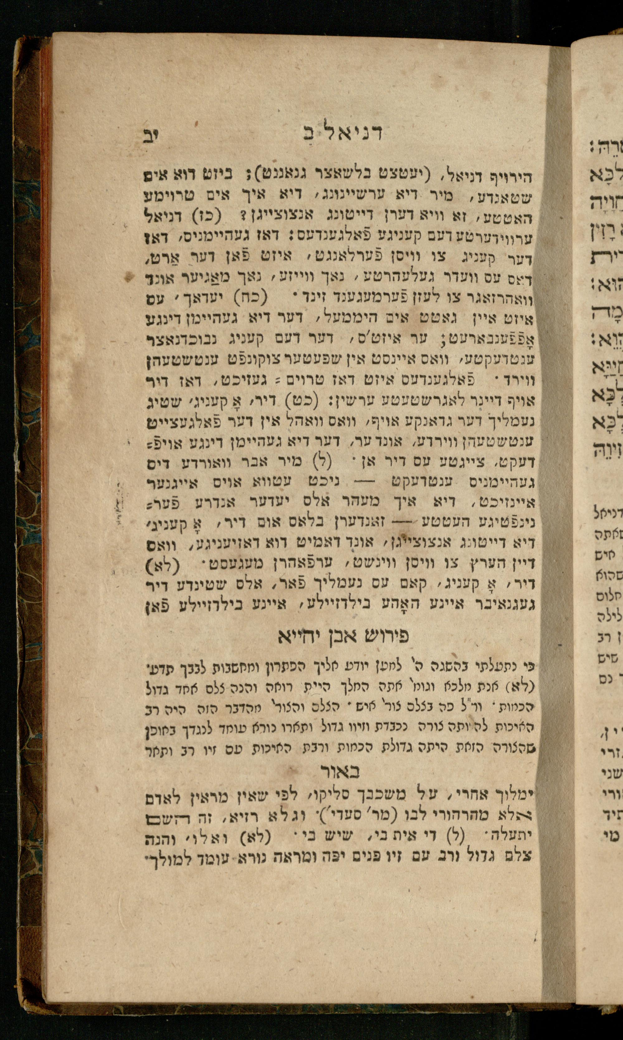 Sefer Daniʾel : meturgam bi-leshon Ashkenazi / me-et Ṿolf ben Yosef u-mevoʾar me-et Mosheh ben Uri Feivesh ṿe-nilṿeh elaṿ perush ha-Rav Ibn Yaḥyaספר דניאל : מתורגם בלשון אשכנזי / מאת וואלף בן יוסף ומבואר מאת משה בן אורי פייבש ונלוה אליו פירוש הרב אבן יחייא