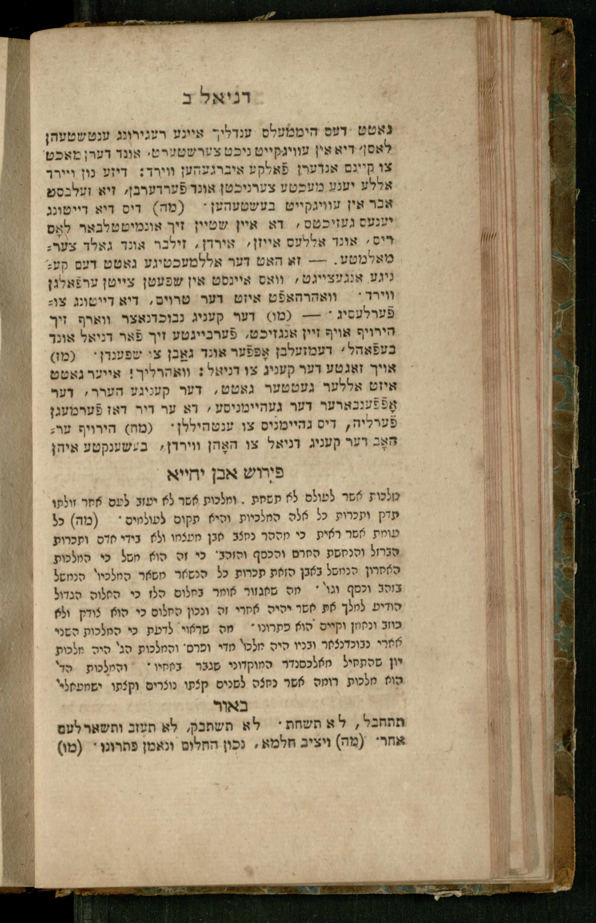 Sefer Daniʾel : meturgam bi-leshon Ashkenazi / me-et Ṿolf ben Yosef u-mevoʾar me-et Mosheh ben Uri Feivesh ṿe-nilṿeh elaṿ perush ha-Rav Ibn Yaḥyaספר דניאל : מתורגם בלשון אשכנזי / מאת וואלף בן יוסף ומבואר מאת משה בן אורי פייבש ונלוה אליו פירוש הרב אבן יחייא